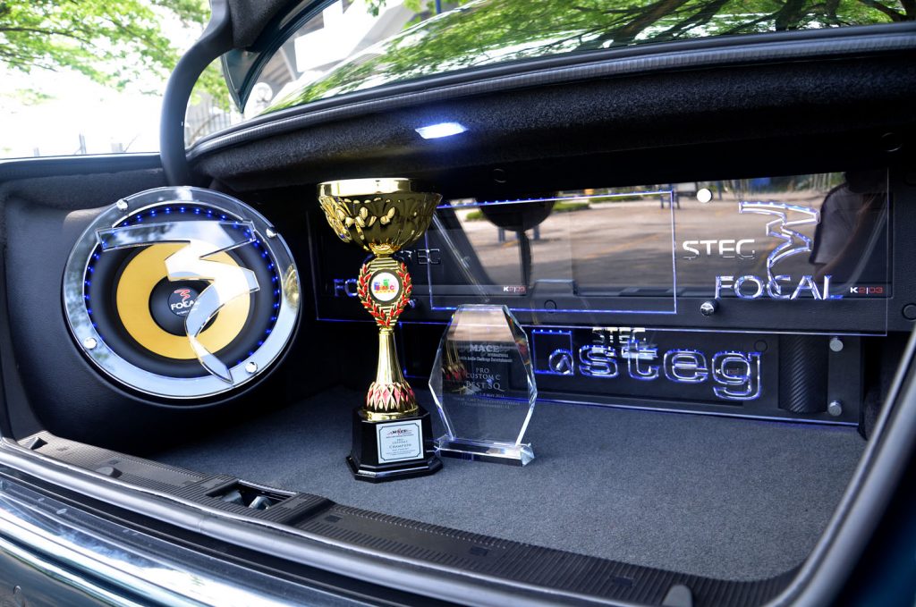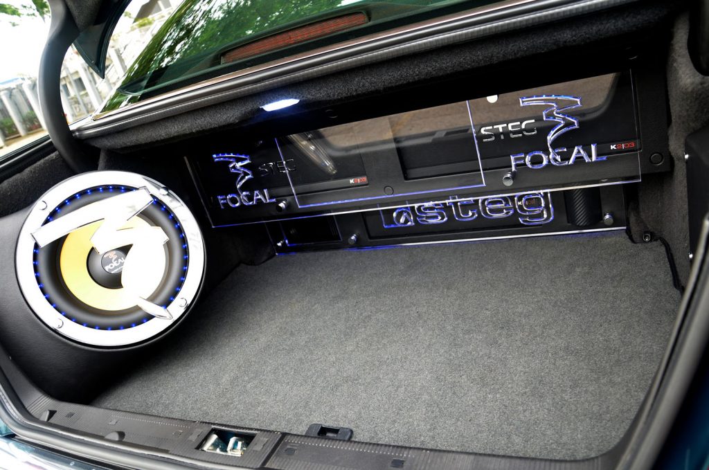 Susunan peralatan audio kereta ini memang antara yang terbaik pernah saya lihat. Di dalam bonet belakangnya, setiap unit perkakasan audionya dipasang dengan teliti di mana ke semua amplifier dan kapasitor ditampal terus pada dinding dalam. Kemudiannya ditutup dengan arkilik yang diukir dengan corak STEG dan FOCAL. Begitu juga woofer Focal yang dipasang kemas di bahagian sisi dan kemudiannya dilindungi sekeping logo arkilik Focal. Tampak sungguh memukau.