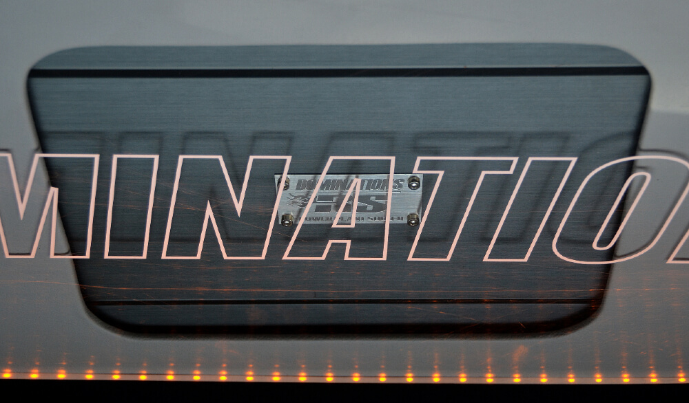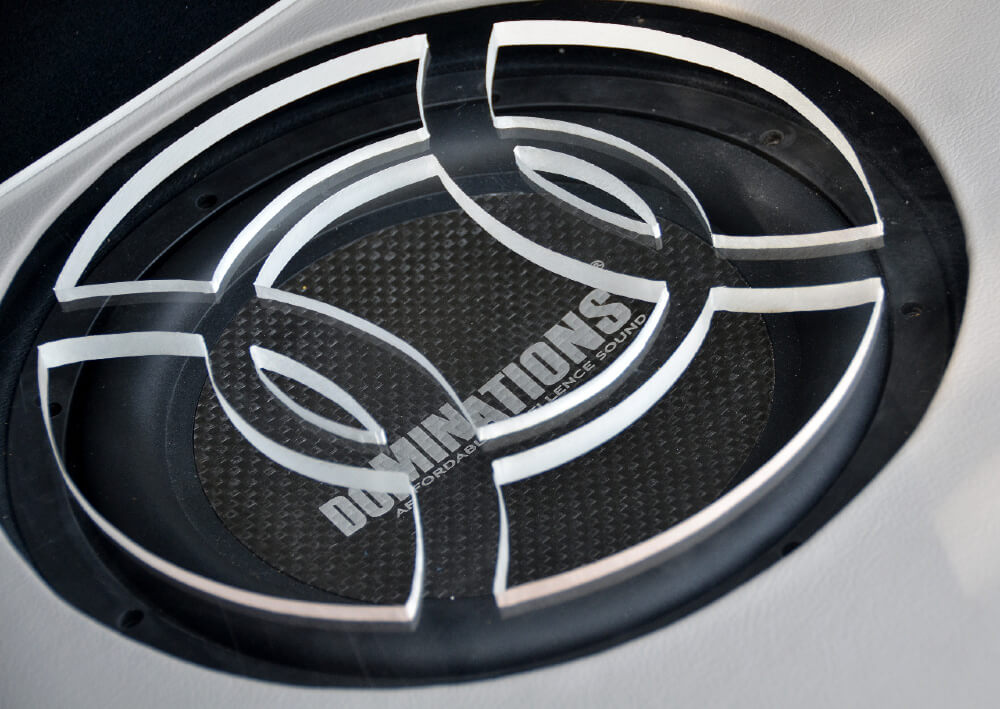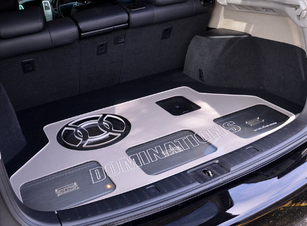 Proses menyempurnakan sistem bunyi kereta ini diteruskan dengan pemasangan seunit woofer 12” Dominations 12ZB. Dipasangkan di atas lantai but belakang, penghalaan kon ke atas memberikan kekedapan bunyi yang positif. Sudah tentu ia perlukan amplifer yang cukup berkuasa dan stabil dan amplifier Dominations monoblock RS5000D adalah jawapannya. Amplifier kelas D berkuasa 500watt saluran tunggal ini dipasangkan bersama dengan 2 unit amplifier 4300 tadi di atas lantai belakang. Dengan sedikit sentuhan kreatif dari bahan arkilik dan penggunan lampu LED, ruang but belakang SUV ini kelihatan cukup sempurna sekali.