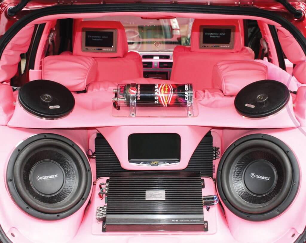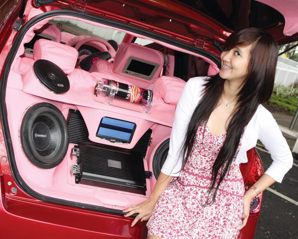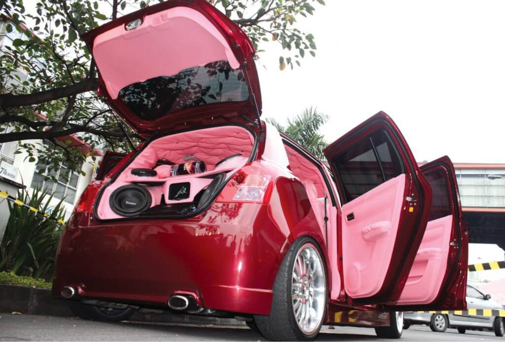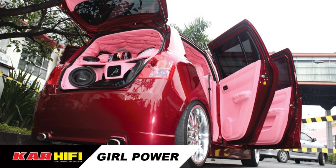 Ya. Begitu juga halnya dalam situasi kereta merah jambu ini. Mungkin di luar dan di dalam kereta ini dipenuhi dengan aksesori berwarna lembut, tetapi prestasi sistem audio Swift ini tidak harus dipandang sepi. Siapa sangka gadis manis ini turut terkena virus kegilaan dunia audio. Lihat saja pada bonet belakang kereta ini, tak terbeliak biji mata dibuatnya? Setanding profesional. Inilah baru dikatakan Girl Power!
