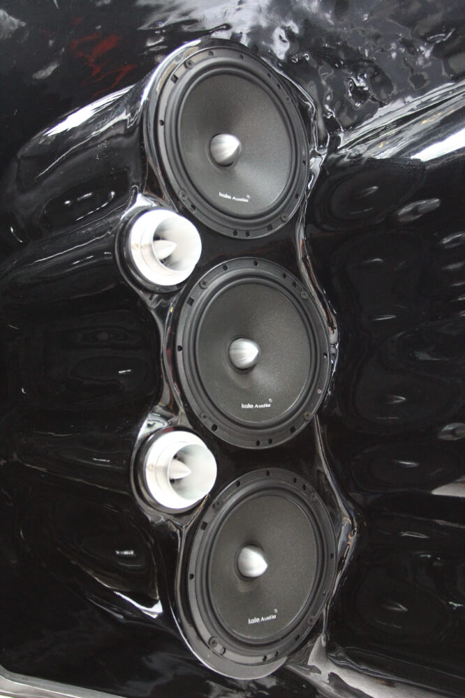 Menemani woofer adalah gugusan mid bass 6” Kole Audio sebanyak 12 unit, dipacukan seunit amplifier 2 channel Kole Audio. 6 unit mid bass ditempatkan di pintu bonet dengan susun atur yang sangat menarik seumpama sisik ikan dan diselitkan 2 unit tweeter. Baki 6 unit mid bass dibahagi dua untuk diposisikan di bahagian sisi belakang kereta. Bagi mengimbangi bunyi bass, 4 unit tweeter ditempatkan di bahagian atas, melengkapi staging yang sempurna. Semua tweeter dipacukan seunit amplifier 4 channel Kole Audio.