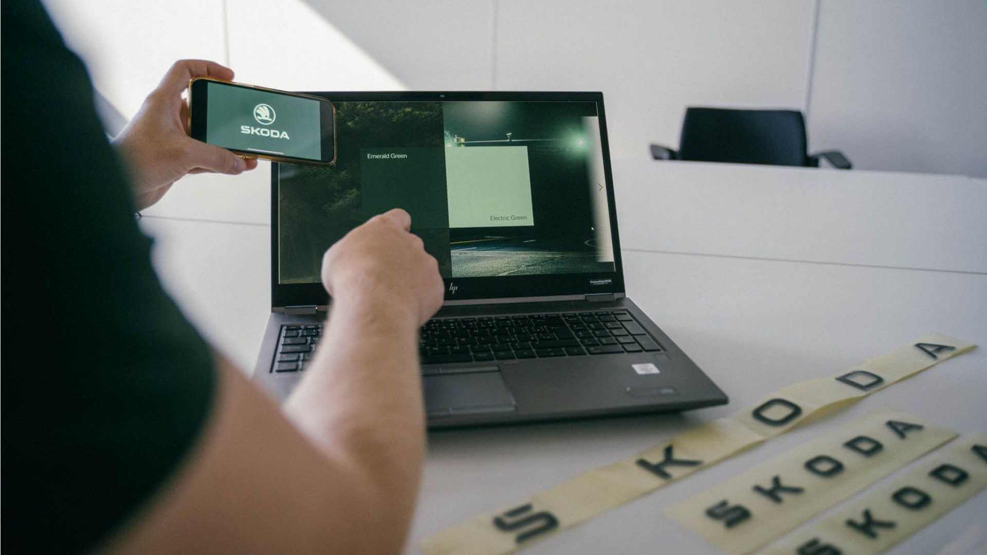 Sekumpulan kecil para pekerja Skoda bertungkus lumus untuk membentuk rekaan logo dan identiti terbaharu ini. Bagaimanapun, kumpulan ini menerima sokongan dari 165 rekaan cadangan sewaktu proses ini dimulakan. Cadangan kemudiannya disenarai pendek kepada tiga pilihan yang melibatkan sebanyak 2,200 respondan dari Republik Czech, Jerman, Itali, Norway dan beberapa negara lain.