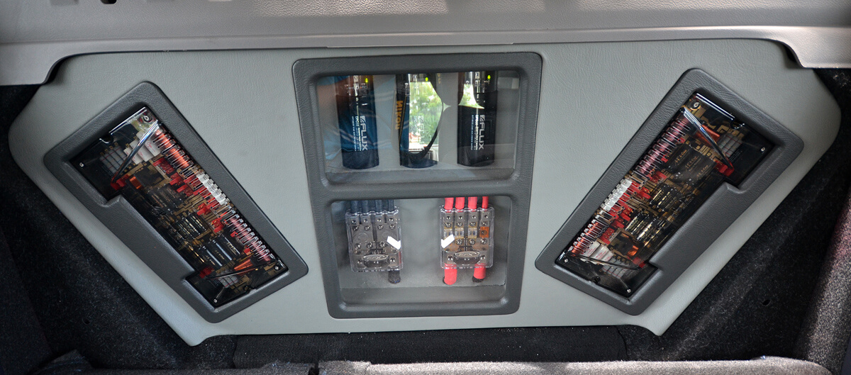 Pemain utama kereta ini ialah Alpine IVA-520E, pemain 2-din dengan fungsi media DVD dan skrin sesentuh ini menerima pemproses Alpine PXA-H800 sebagai pelaras premier. Susunan pembahagian laluannya dibuat dengan 3 aliran utama iaitu frekuensi rendah, sederhana dan tinggi serta frekuensi di bawah 60dB untuk woofer. Untuk tujuan tersebut, 3 unit amplifier Flux dipasangkan dengan kemas di bahagian but belakang dengan penutupan gelas PVV, sedikit pelapik arkilik dan sebaran lampu LED. Amplifier 2 channel, 4 channel dan seunit amplifier monoblok ini memenuhi ruang but belakang dengan penampilan yang menarik.