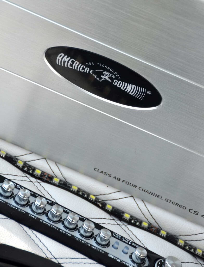 Fokus bunyi terletak pada bahagian but belakang yang menempatkan kesemua sistem audio yang lengkap. Kedua-dua imbangan mid dan low end menyaksikan kehadiran amplifier monoblock America Sound US2500.1D yang menguasakan tiga unit woofer 12” America Sound dari Ultimate Series, US12DM. Terkenal dengan kejituan bunyi dan keseragaman kuasa, pemilihan susunan begini adalah percaturan tepat dalam memastikan bunyi bass stabil.