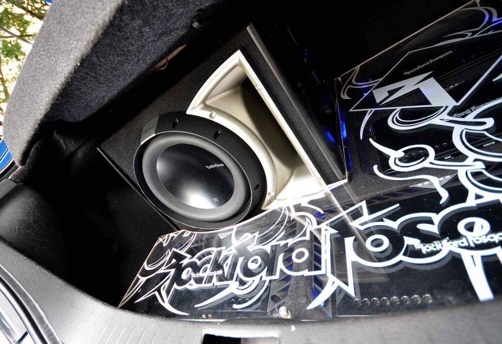Tujuan penalaan sebegini biasanya untuk membahagikan staging bunyi agar sekata. Untuk belakang, speaker ini dikuasakan seunit lagi amplifier 4 channel Rockford Fosgate T600.4. Manakala akhir sekali ialah seunit woofer 12” Rockford Fosgate T2D212 dipasangkan dalam sebuah kotak binaan custom yang dibalut fabrik hitam. Bagi seunit woofer ini, cukup dengan hanya menggunakan seunit amplifier Rockford Fosgate T1500-1BD.