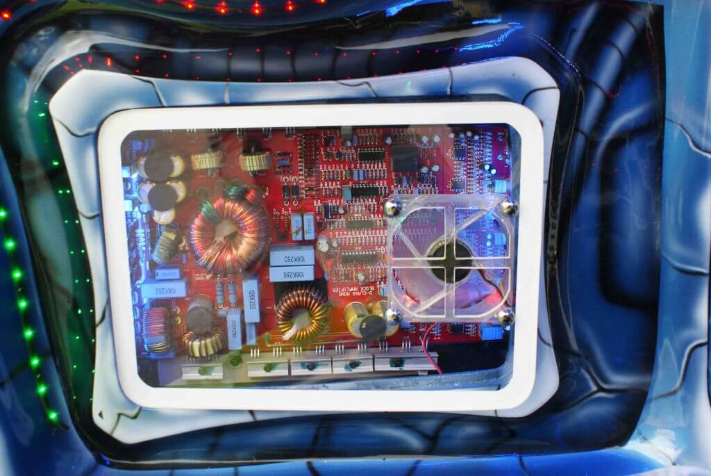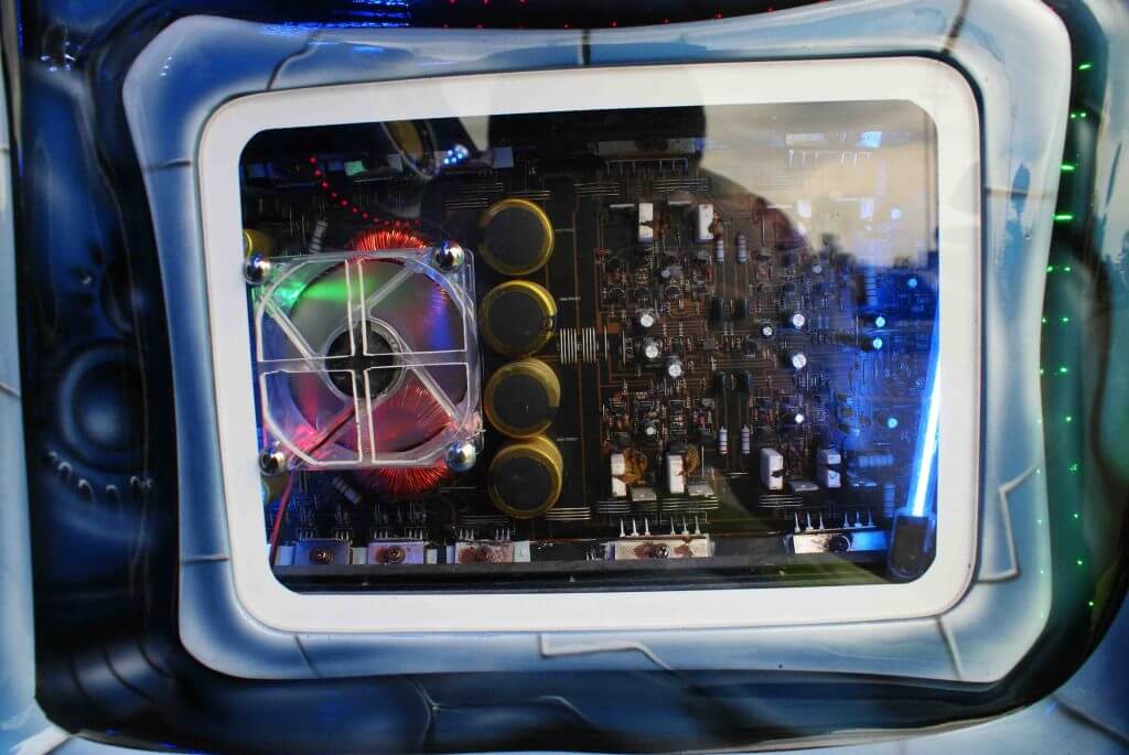 Seterusnya, isyarat yang diproses pre-amp ini akan disalurkan pula kepada 3 unit amplifier bagi diperbesarkan isyarat sebelum memacu sejumlah speaker dan woofer yang sedia menghantui pada bila-bila masa. Bagi tujuan itu, saudara Kenny menggunakan 3 unit amplifier dari jenama yang berbeza. 1 unit amplifier 2 channel jenama Audio Specialist AS-200 telah digunakan untuk memacu 2 unit mid bass 6” ICE Stereo dan 2 unit dome tweeter yang juga dari jenama yang sama.