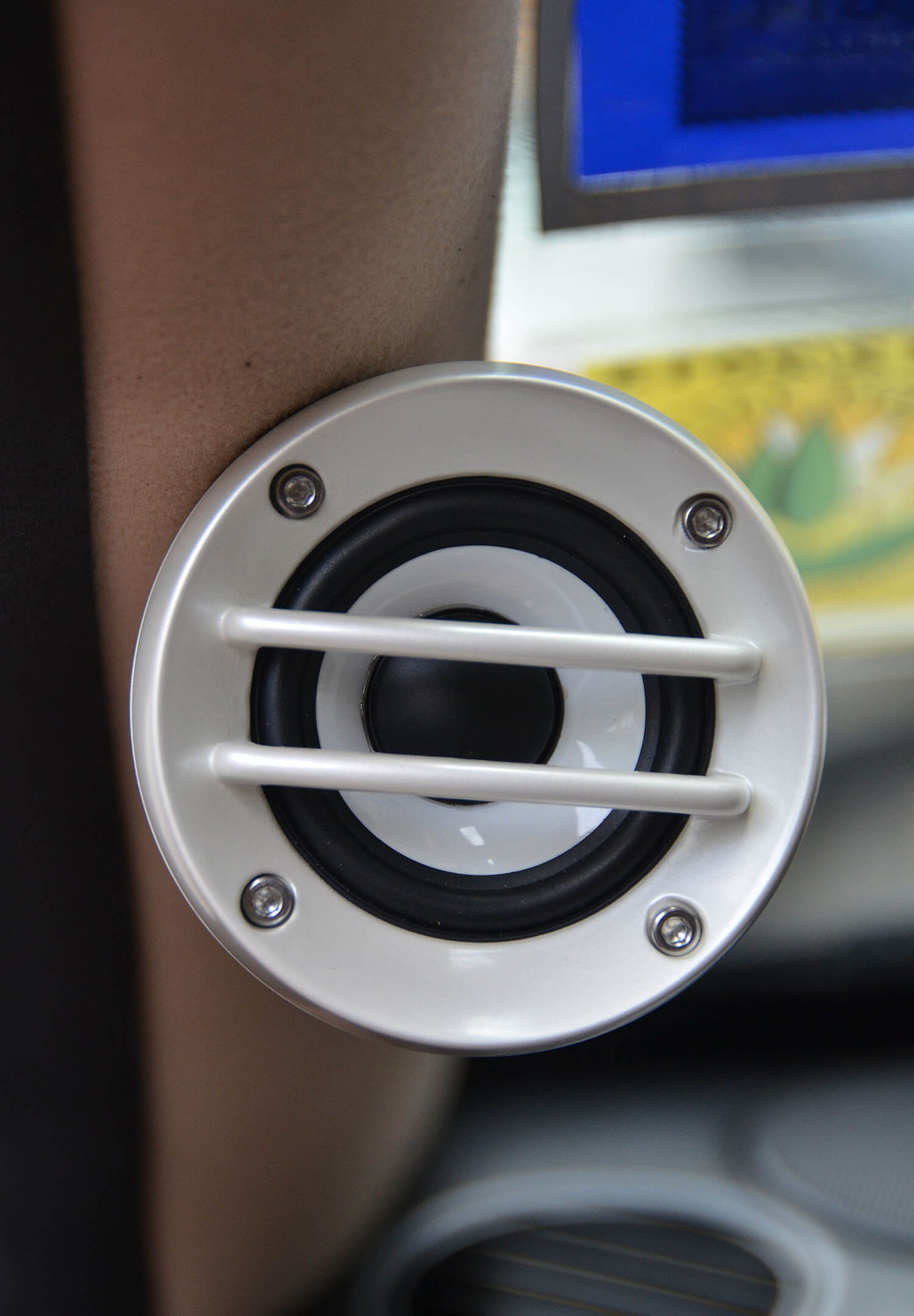 Kereta ini masih menggunakan sistem asal dengan pemain utama 2-din. Ia dilengkapi dengan penukar cakera 6 unit Blaupunkt yang terletak di bawah kolum stereng. Pemiliknya tidak mahu menggugat sebarang posisi asal lantas menambah seunit commander radio Sony dan seunit penukar cakera padat baru Nakamichi 100cdc/i. Kesemua media ini disatukan untuk dikawal Audison Bit Ten D.