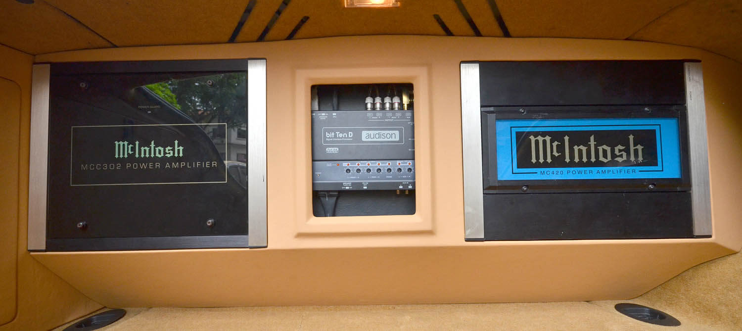 Kesepadanan komponen ini dikemaskan dengan pemasangan dua unit amplifier dari McIntosh; amplifier 2 channel MCC302 dan amplifier 4 channel MC420. McIntosh adalah satu lagi pembuat audio eksotik yang tak suka mengikut arus. Jujurnya saya tak berapa suka dengan amplifier ni kerana keluaran bunyinya yang ‘keras’ berbanding amplifier premium yang lain.