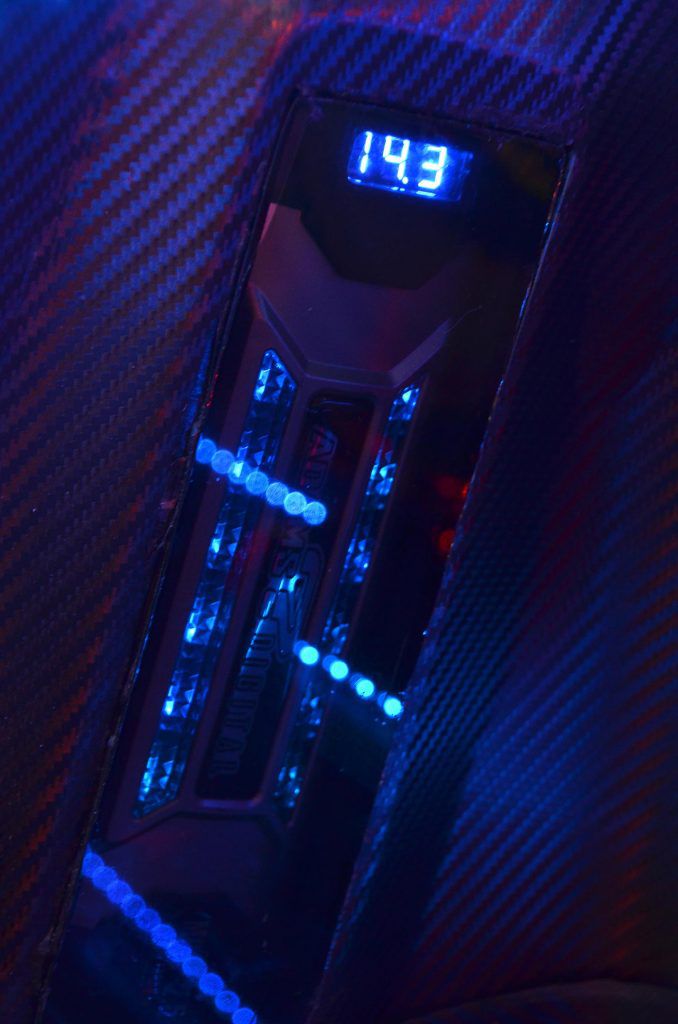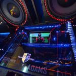 Kemasan dalam but kereta ini dibuat dengan sangat terperinci. Setiap komponen disimpan dengan rapi dan dihias dengan begitu teliti. Lihat di bahagian sisi dalamannya yang menempatkan amplifier dan pre-amp. Begitu juga lantainya yang dipasangkan dengan seunit monitor 7” dan juga amplifier tambahan lain. Sekeping ‘persplex’ nipis dilitupi untuk memberi kemasan yang teratur.
