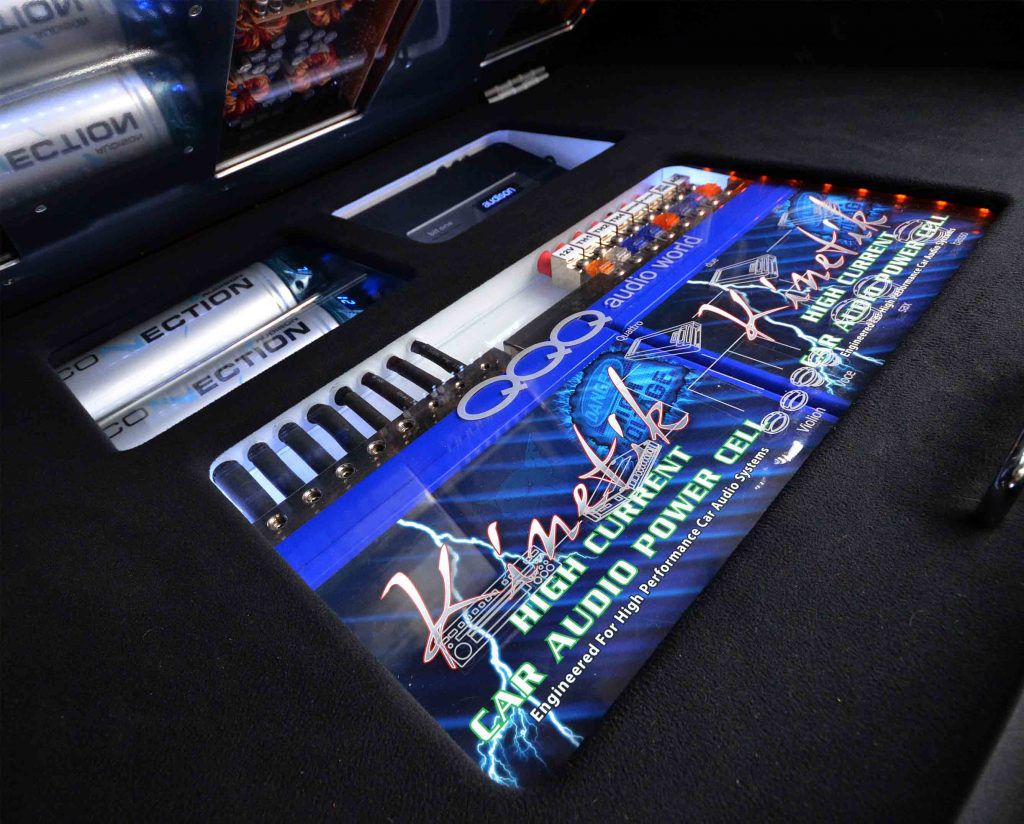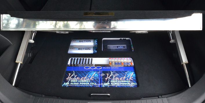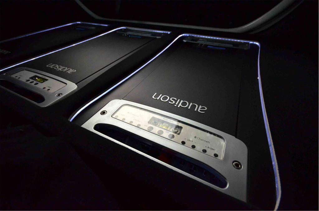 Selak sahaja karpet di bahagian but belakangnya, terhidang 3 unit amplifier Audison Quattro, Due dan Uno. Ini bukanlah amplifier siri LRX yang biasa kita lihat, ini adalah siri Thesis yang menampilkan masing-masing 4, 2 dan sebuah rekaan monoblok. Harganya tak payah cakap, mungkin satu pertiga dari harga kereta ini.