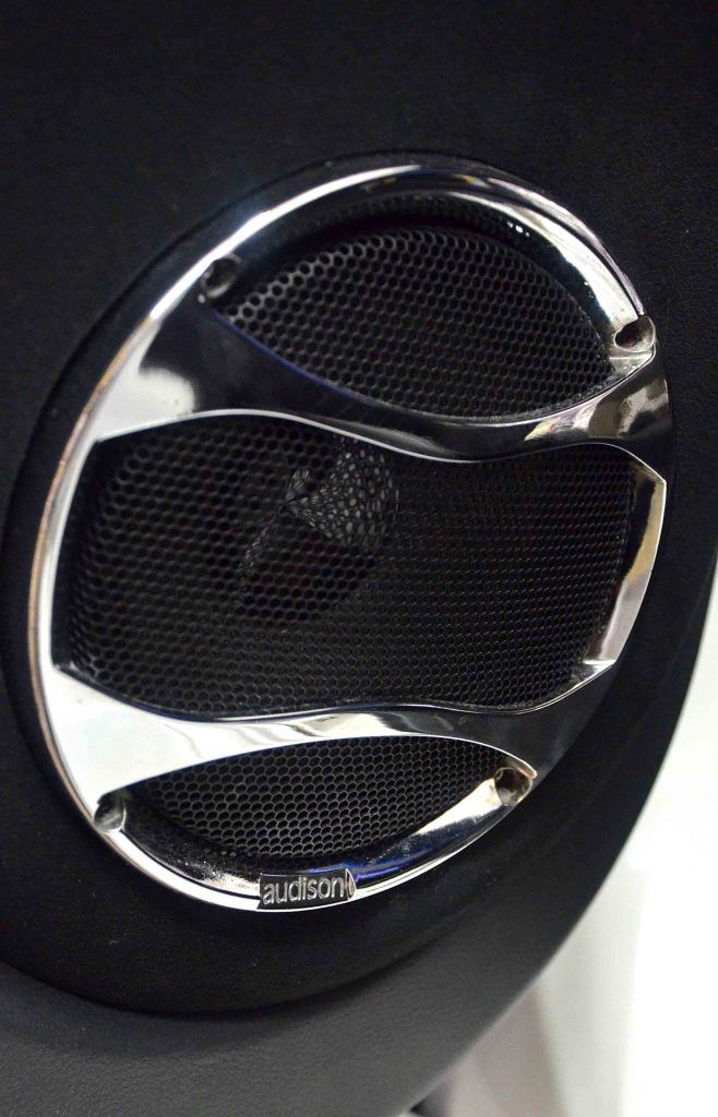 Speaker pilihan untuk dipadankan dengan pemproses Nakamichi ini ialah sistem 3 hala yang menguasai sepenuhnya bahagian kabin hadapan. Di bahagian A pillar kelihatan 2 unit speaker 4” Voce dan tweeter Violino. Setiap unit speaker ini mendapat kuasa stabil dari setiap channel kuasa yang dikeluarkan oleh amplifier Quattro tadi.