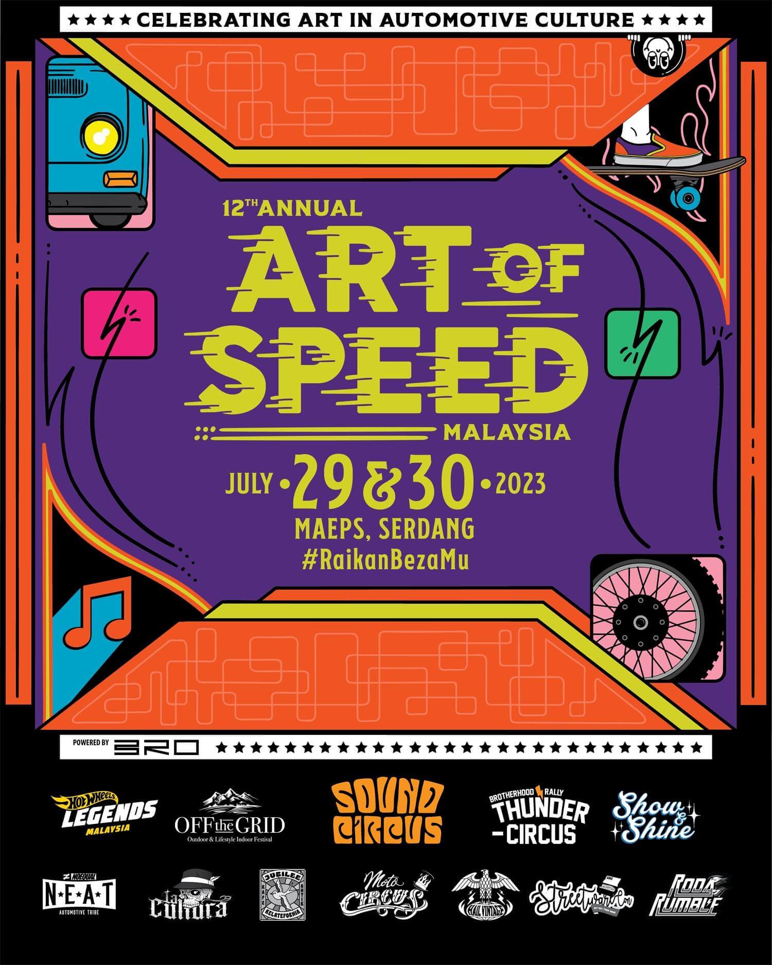 Selepas menerima sambutan cukup luar biasa dari pengunjung pada tahun 2022, kini Art of Speed kembali untuk tahun 2023. Lebih besar dan lebih baik dari sebelumnya. Tahun ini, acara Kustom & Counter Culture terulung Malaysia mengambil tempat di Malaysia Agro Exposition Park, Serdang (MAEPS) – ruang tertutup seluas 350,000 kaki persegi, ruang luar seluas 8.6 ekar – mengambil alih setiap dewan acara dengan menampilkan lebih banyak aktiviti demi memuaskan hati peminat dan pengunjung.