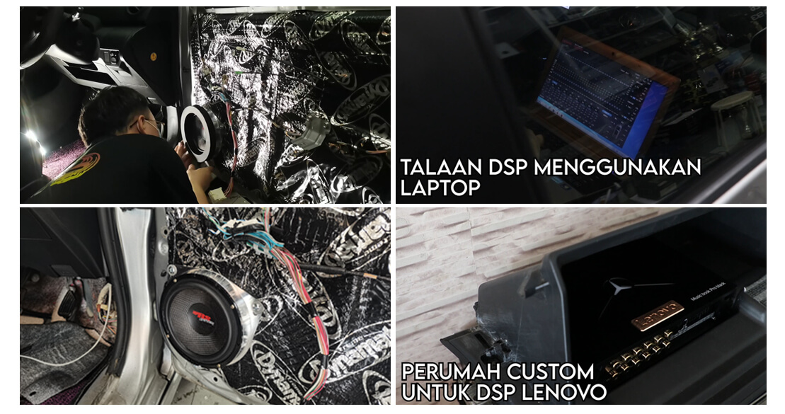 Bagi mendapatkan penalaan dan audio yang lebih baik, Nik Cheong memulakan proses rombakan dengan Digital Signal Processor atau DSP Lenovo Music Book Pro (Black). Fungsi DSP ini adalah untuk tuning audio yang lebih baik berbanding crossover. Apa yang lebih menarik, ianya mudah dipasangkan dengan menggunakan soket plug and play.