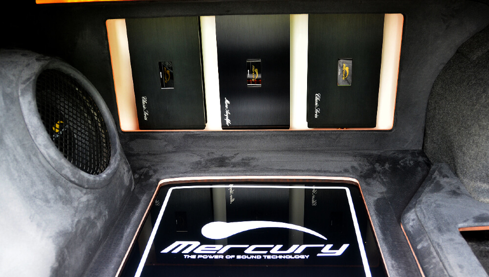 Amplifier pertama digunakan bagi memacu satu set speaker komponen Mercury MCR-188Z yang hadir dengan dua unit speaker mid bass 6.5”, tweeter jenis silk dome dan crossover. Speaker ini ditanam pada panel pintu kereta Preve ini bagi menggantikan speaker asal manakala tweeternya dipasang di dalam perumah custom pada tiang-A kereta dan ditala bagi mendapat staging bunyi yang terbaik di dalam kereta.