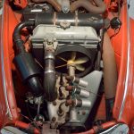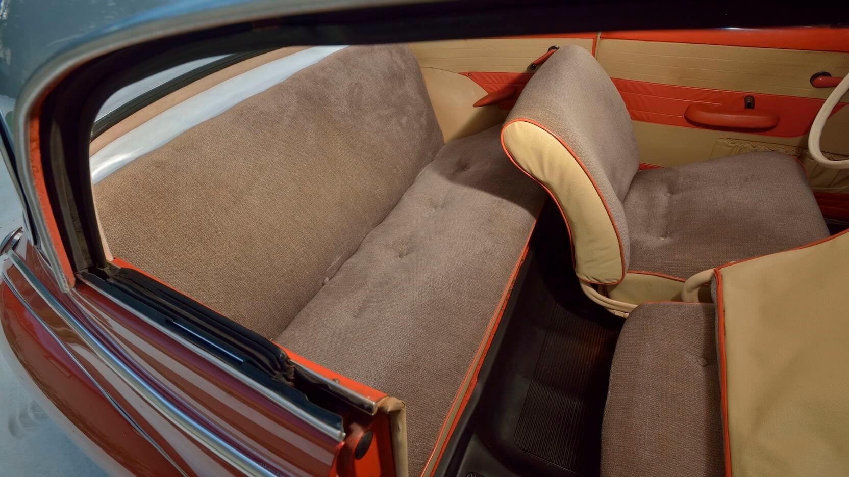 Di bahagian kabin pula, tempat duduknya dikenakan dengan dua tona warna yang dipadankan bersama warna jingga. Walaupun bahagian dalamnya tidak secanggih atau semewah model kereta hari ini, terdapat beberapa elemen yang tetap nampak menarik terutamanya jam analog dan radio transistor Motorola.