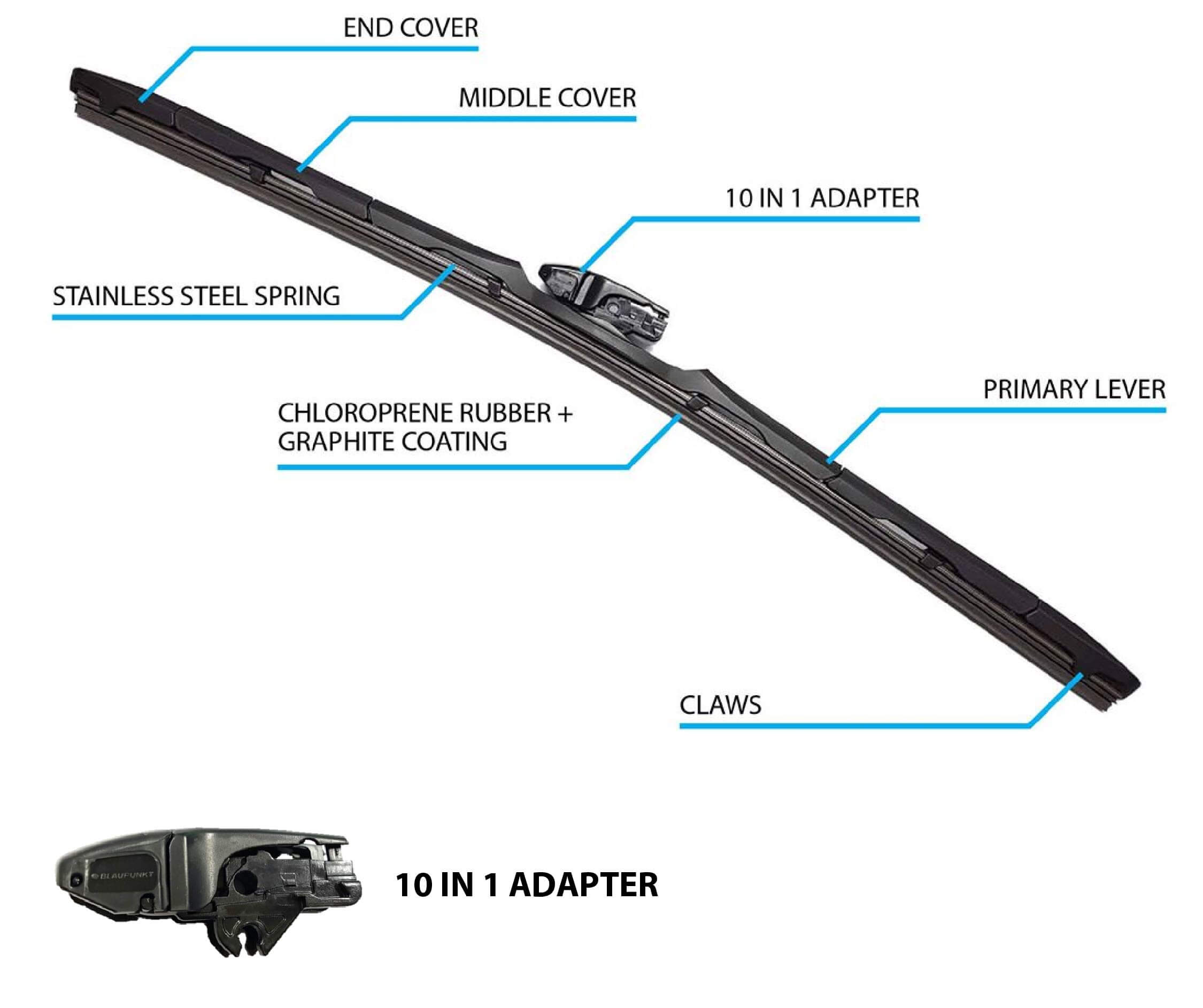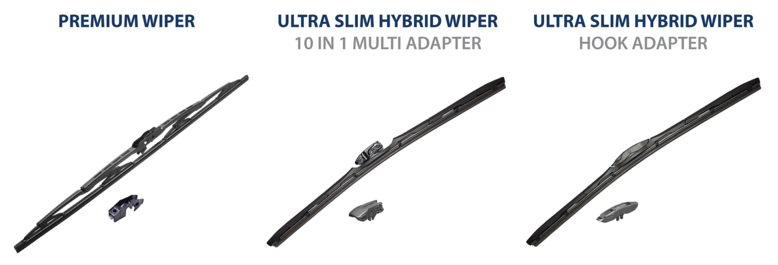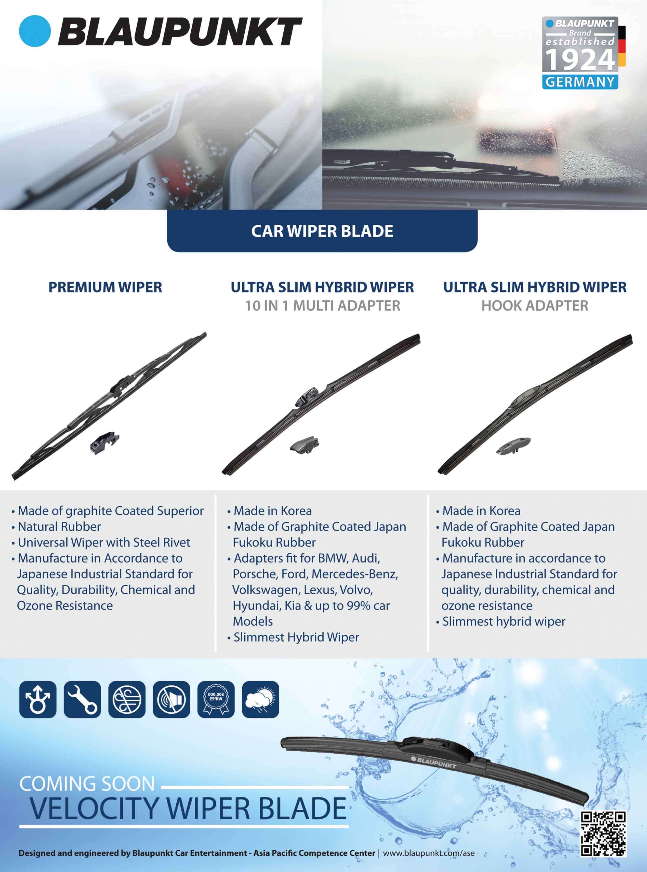 Ultra Slim Hybrid Wiper (10 in 1 multi adapter), Ultra Slim Hybrid Wiper (Hook Adapter) dan Blaupunkt Premium Wiper Blade