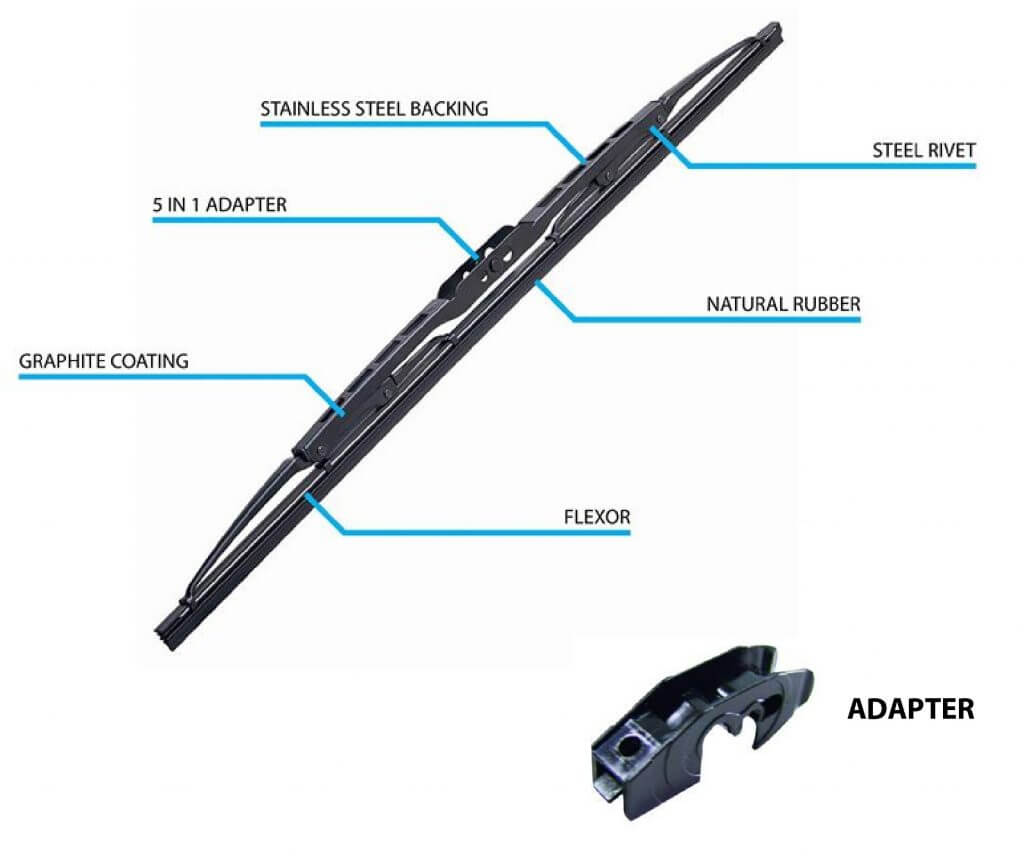 Diperbuat dari penyalut grafit getah semulajadi yang tahan ozon dan tahan lama, khas untuk kegunaan cuaca di Asia Tenggara. Pengelap cermin ini mampu memberikan 500,000 pengelapan, sesuai untuk cuaca mendung dan hujan. Mengelap air hujan dan meninggalkan permukaan cermin yang jelas untuk pemandu. Tidak terhakis dari pancaran matahari ekoran penggunaan material yang berkualiti tinggi.