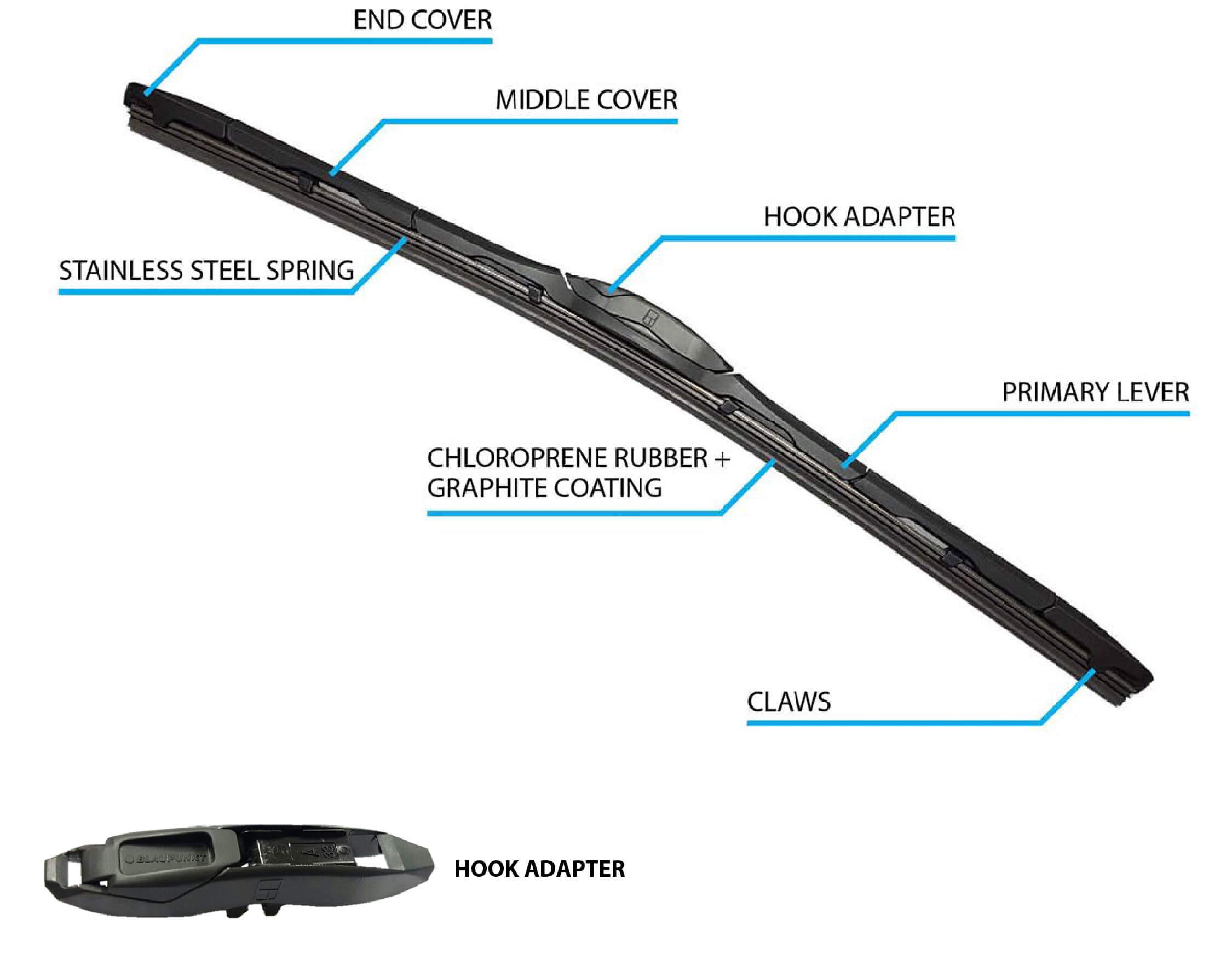 Blaupunkt Ultra Slim Hybrid Wiper (Hook Adapter)