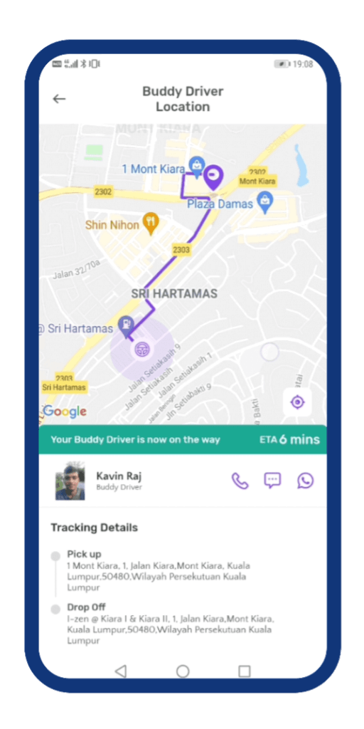 Anda juga perlu memberikan butiran kenderaan peribadi anda seperti yang diminta. Selepas diproses, butiran pemandu yang ditugaskan akan dimaklumkan melalui aplikasi tersebut, dan Buddy Driver anda akan menghubungi anda secara terus.