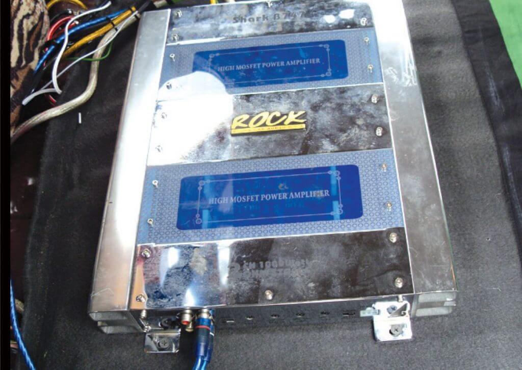 Sebagai sumber bekalan tenaga, Murali telah menggunakan dua buah unit amplifier 2 channel Different Audio untuk dua biji woofer tadi. Setiap satu unit amplifier ini bertanggungjawab memacu sebiji woofer. Manakala sebuah unit amplifier 2 channel Rock Power Audio U.S.A model Shark B747 digunakan untuk memberikan tenaga kepada kesemua mid bass dan 4 biji tweeter. Pasti anda keliru kerana hanya dapat melihat 2 biji tweeter di bahagian belakang. Ini kerana, dua biji lagi tweeter jenis dome tweeter telah dipasang di bahagian dalam kereta bagi memastikan keseimbangan bunyi yang dihasilkan.