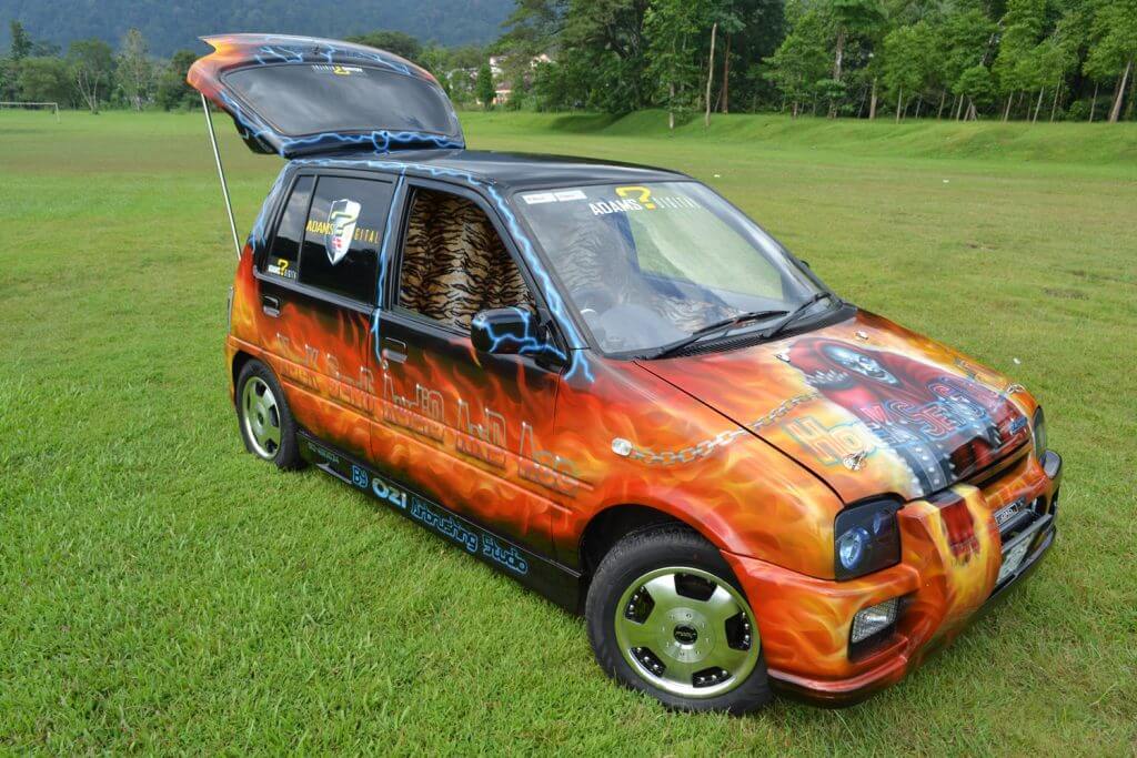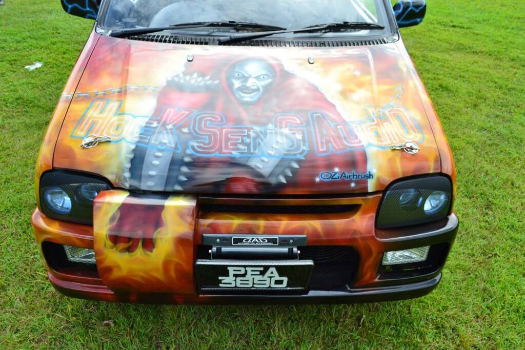 Habis sistem ICE dikupas satu persatu. Beralih pula kepada unsur seni yang ditumpahkan ke atas kereta genit ini. Kecil tapi tampil garang. Terutamanya pada sapuan cat ‘air-brush’ yang garang dan berani. Susunan yang ditempatkan untuk setiap unit woofer dan speaker amat teratur dan bijak. Mengelak dari berlakunya kesesakan. Penempatan speaker di pintu but belakang yang bertingkat nampak sangat menarik dan dari kejauhan tak ubah seperti deretan gegendang dalam kumpulan simfoni pergendangan milik Pak Ngah.