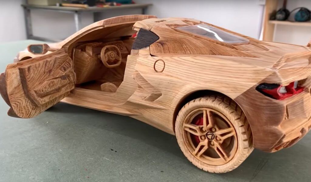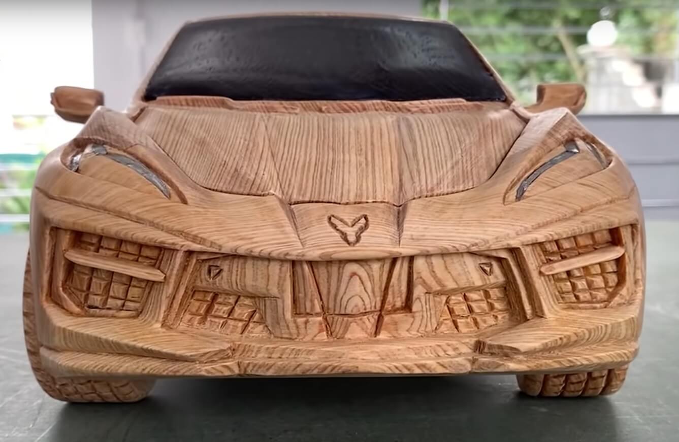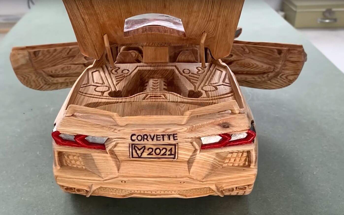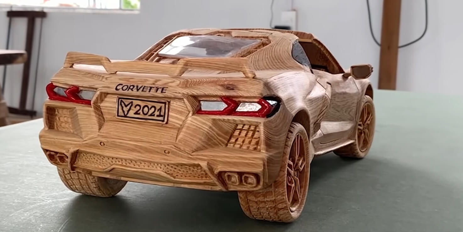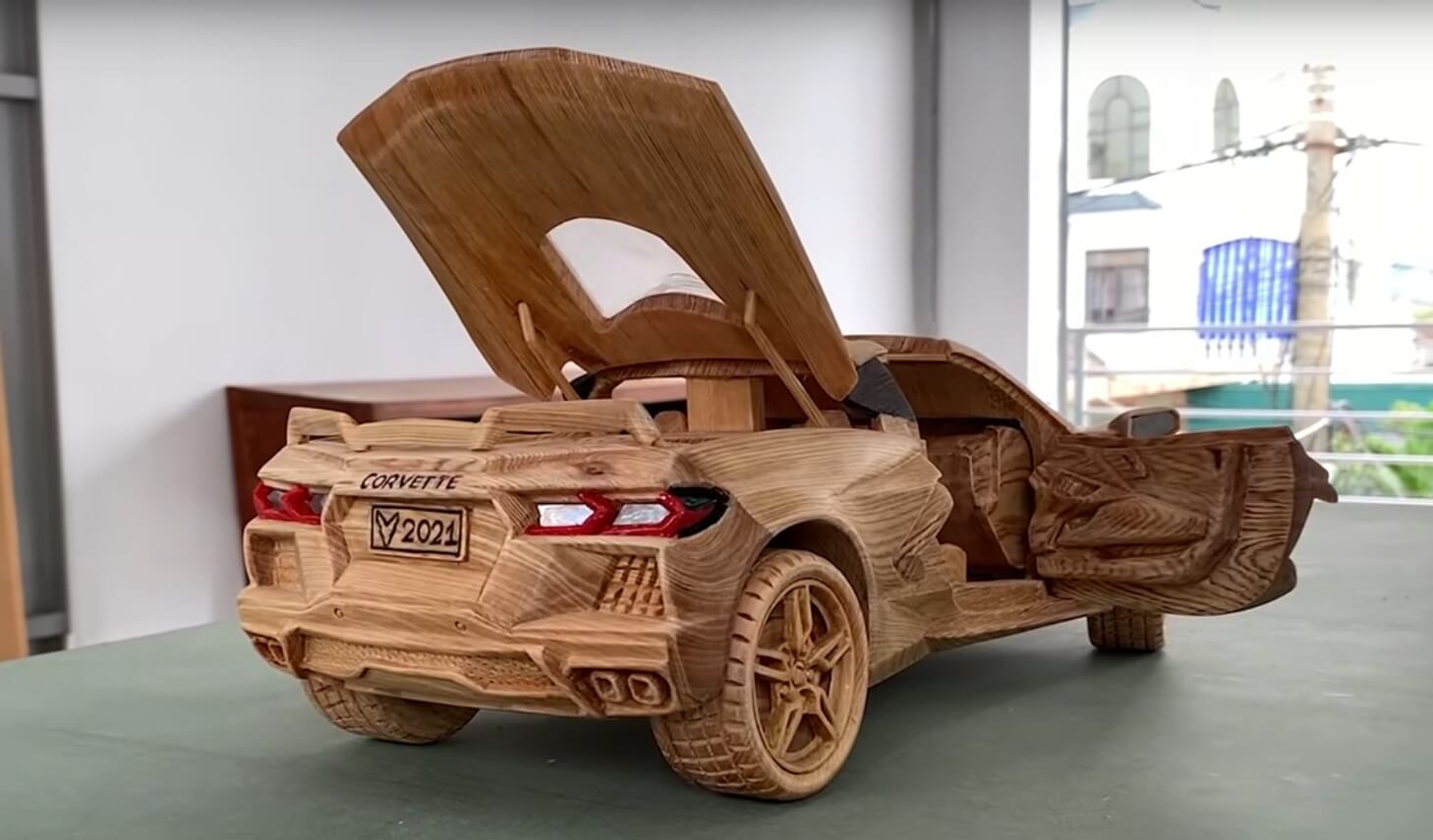 Sepertimana model terdahulu yang pernah dikongsikan terdahulu, model ini juga lengkap dengan segala perincian. Bermula dari hanya kayu kosong, pereka yang juga mempunya channel di Youtube telah berkongsi setiap kerja-kerja penghasilan Chevrolet C8 Corvette ini. Nampak seperti kereta asal, sehinggakan lampu dan rim juga kelihatan sama.