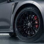 Bagi meningkatkan lagi kehebatan dan kecemerlangan sudut prestasinya, GR Corolla ini dipasangkan dengan rim gloss black 18-inci di bahagian belakang dengan tayar Michelin Pilot Sport 4. Dilengkapi pula dengan sistem pemberhentian caliper aluminium 4-piston, cakera depan berukuran 14 inci. Belakang pula, dipasangkan dengan caliper aluminium 2-piston dan lebih kecil 11.7-inch.