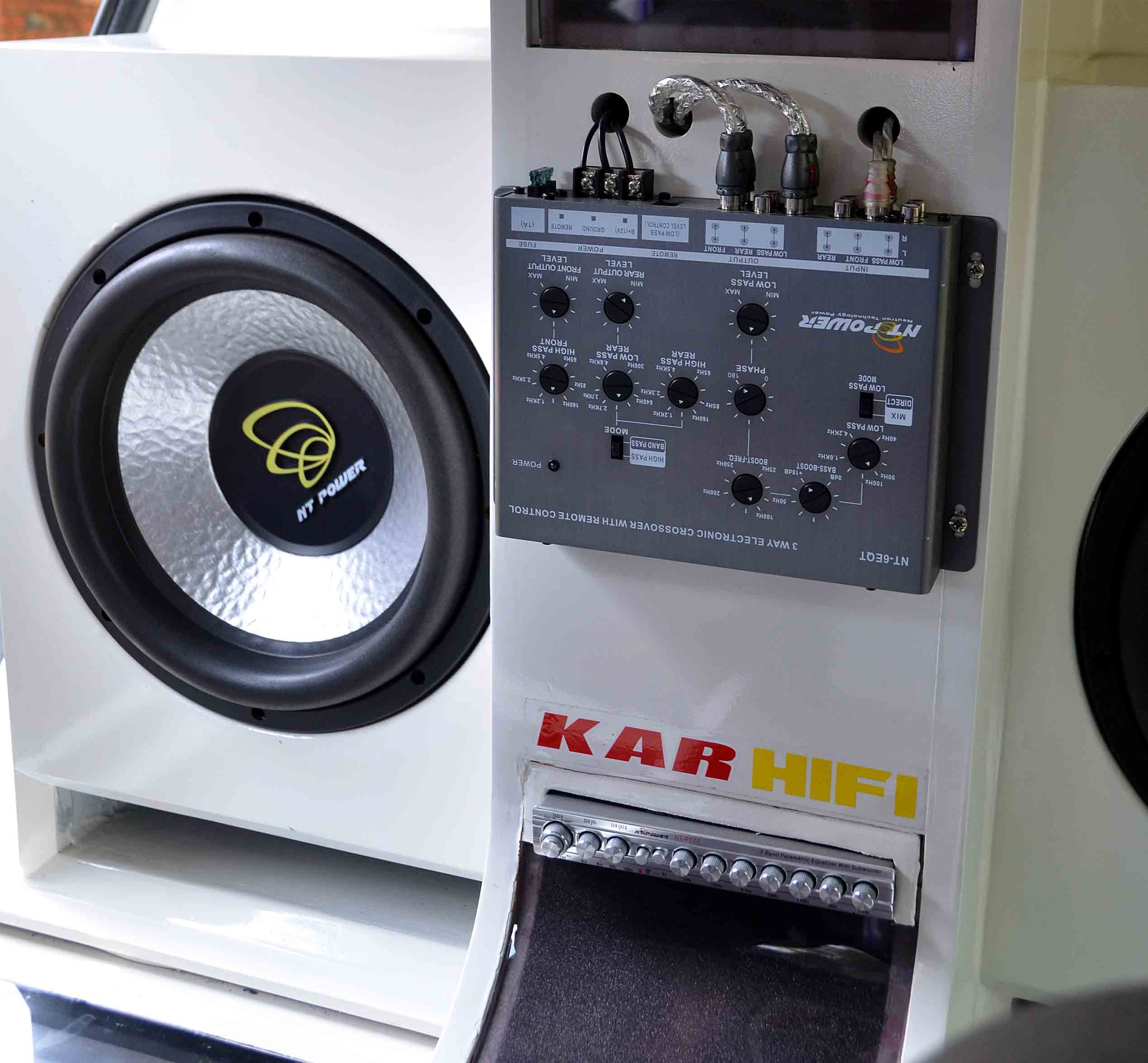 Dari sini, installer memecahkan isyarat frekuensi tadi kepada dua saluran yang berbeza – satu untuk mid dan high dan satu lagi untuk bass semata-mata. Sebanyak dua unit pre-amp harus digunakan dan pihak installer memilih 2 unit pre-amp NT Power NT-P777 yang diberikan tugas yang berbeza walaupun rupanya sama.