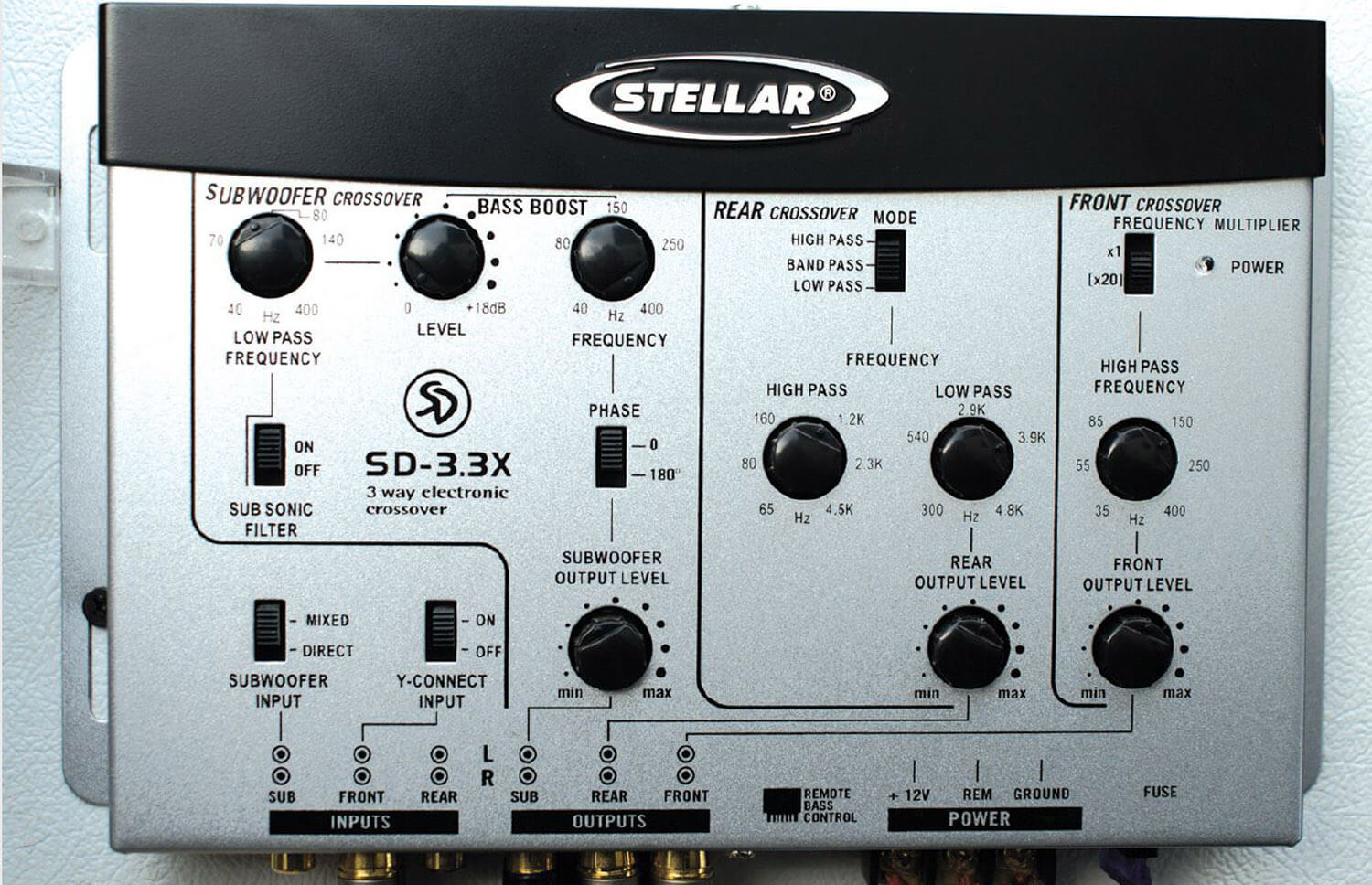 Bagi memberi keseimbangan dan mempertingkatkan kualiti isyarat yang dihantar, elektronik crossover telah digunakan. Tior memilih jenama Stellar SD-3.3X bagi menjalankan misi memotong segala frekuensi yang berlebihan agar jumlah yang diperlukan tepat sebelum dipancarkan pula kepada barisan amplifier-amplifier. Menerusi amplifier ini pula, isyarat yang diterima akan diperbesarkan.