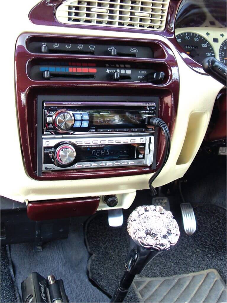 Ruang hadapan Kancil yang kecil menjadi lebih luas. Tahniah atas pemilihan warna putih, sekaligus menyelamatkan keadaan. Tambah menarik apabila pandangan singgah di bahagian depan kereta. Dua unit yang memenuhi bahagian tengah yang telah disusun rapi dan kemas. Pemain CD yang bertindak sebagai HU jenama Alpine CSE-9874E telah diletak bertingkat bersama pemain DVD tambahan dari jenama For You. Sudah pasti kedua-dua pemain ini memberikan peluang kepada Selvam untuk membuat pilihan mengikut keadaan. Terpulang sama ada untuk menikmati muzik ataupun menonton secara visual.