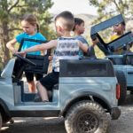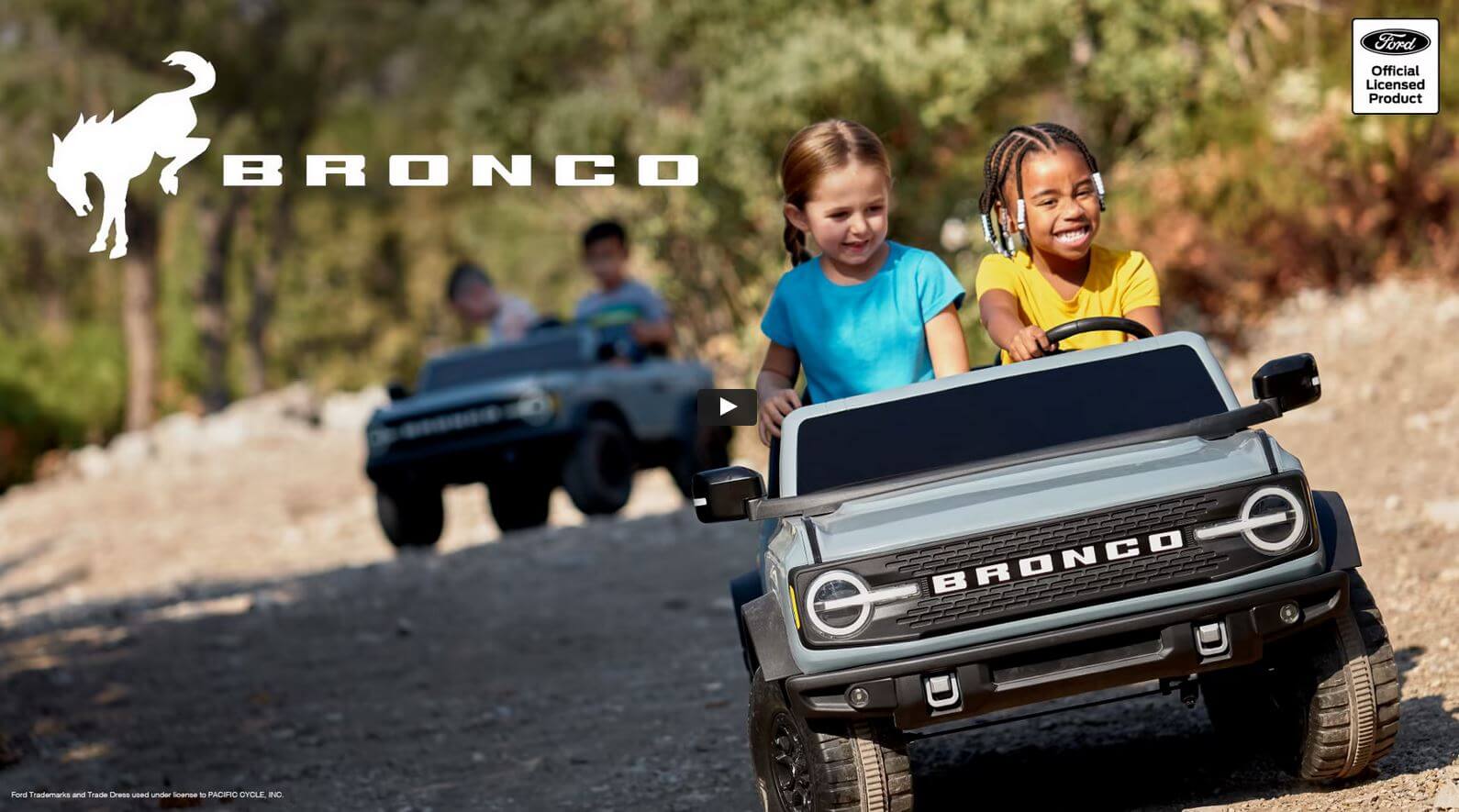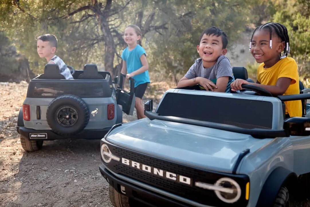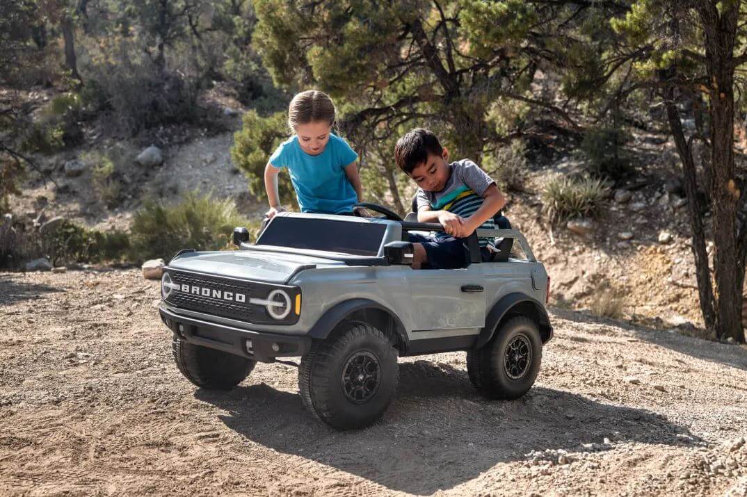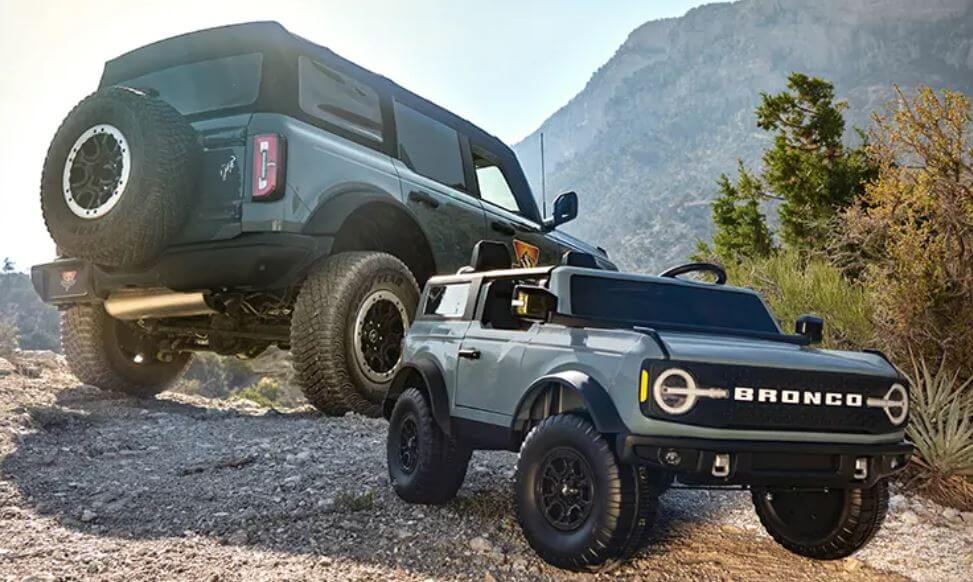Sebanyak empat kenderaan mainan yang ditawarkan Kid Trax yang didatangkan dengan lampu utama LED, lampu siang yang benar-benar menggantikan versi asal. Kalau diperhatikan betul-betul, ia mempunyai semua perincian yang ada pada Ford Bronco sebenar.SUV ini mempunyai lima tayar, tempat duduk sport bucket, cermin sisi yang berfungsi dengan cukup baik, hon dan bunyi enjin sebenar. Ia menggunakan bateri 12V termasuk pengecas yang disediakan bersama dalam pakej satu pakej. Penutup bahan bakar (minyak) digunakan sebagai penghalang untuk slot pengecas bateri kereta.