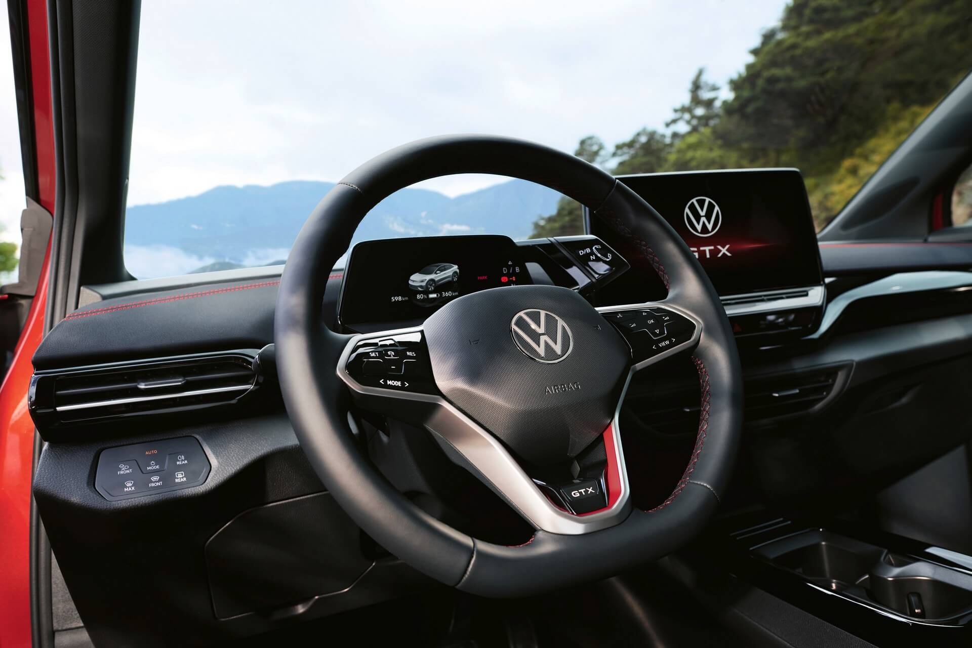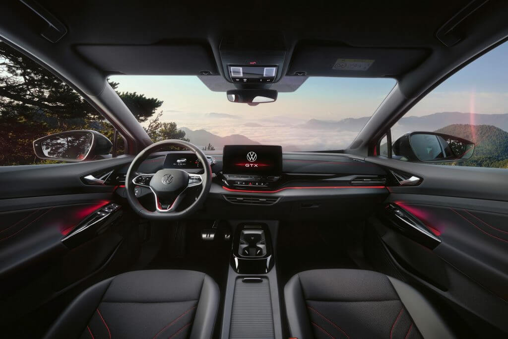 Tidak dinafikan, banyak kemaskini yang dilakukan di bahagian kabin ID.4 GTX dan ID.5 GTX. Sebagai contoh, dashboad dan pintu kini berwarna hitam yang diserikan warna merah. Pelanggan boleh memilih tempat duduk sport premium dengan logo, seam dan juga piping merah.