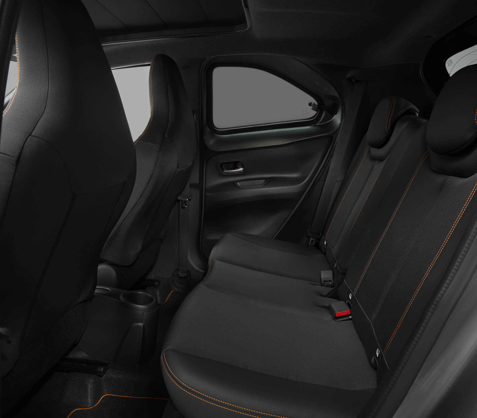 Tempat duduk pemandu lebih tinggi 55mm (2.2 inci) berbanding model sebelum ini dengan darjah penglihatan dipertingkatkan. Pasukan jurutera Toyota telah mempertingkatkan penebat bunyi bising menjadikan ia sebagai kereta terbaik dalam segmen A. Dari segi keselamatan pula, kesemua varian Aygo X didatangkan dengan Toyota Safety Sense sebagai standard dengan kombinasi kamera pengesan monokular dan radar millimeter-wave.
