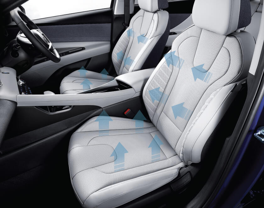Tempat duduk hadapan pula didatangkan dengan larasan lapan cara dengan dua sokongan tulang belakang, serta ciri ventilasi dan pemanasan yang turut didatangkan pada roda stereng dan juga cermin sisi. Dari segi aspek keselamatan, Elantra dilengkapi teknologi Hyundai SmartSense merangkumi ciri seperti Bantuan Kekal Laluan, Amaran Pelanggaran Hadapan, Amaran Titik Buta, Amaran Lintasan Trafik Belakang, Amaran Penumpang Belakang dan Amaran Tumpuan Pemandu.