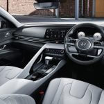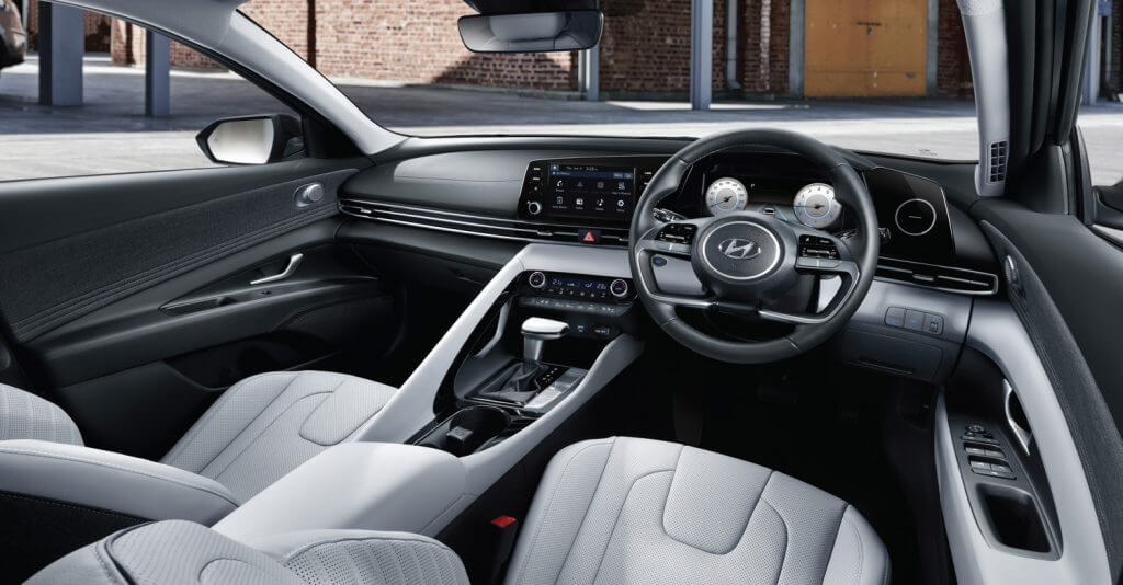 Memasuki ruang dalaman, Elantra menawarkan skrin kluster digital 10.25 inci dan skrin infotainmen bersaiz 8 inci yang menyokong sambungan kepada Apple CarPlay dan Android Auto. Hyundai turut menawarkan dua warna berbeza bagi upholsteri dalaman, iaitu warna hitam standard dan warna kelabu (Light Grey).