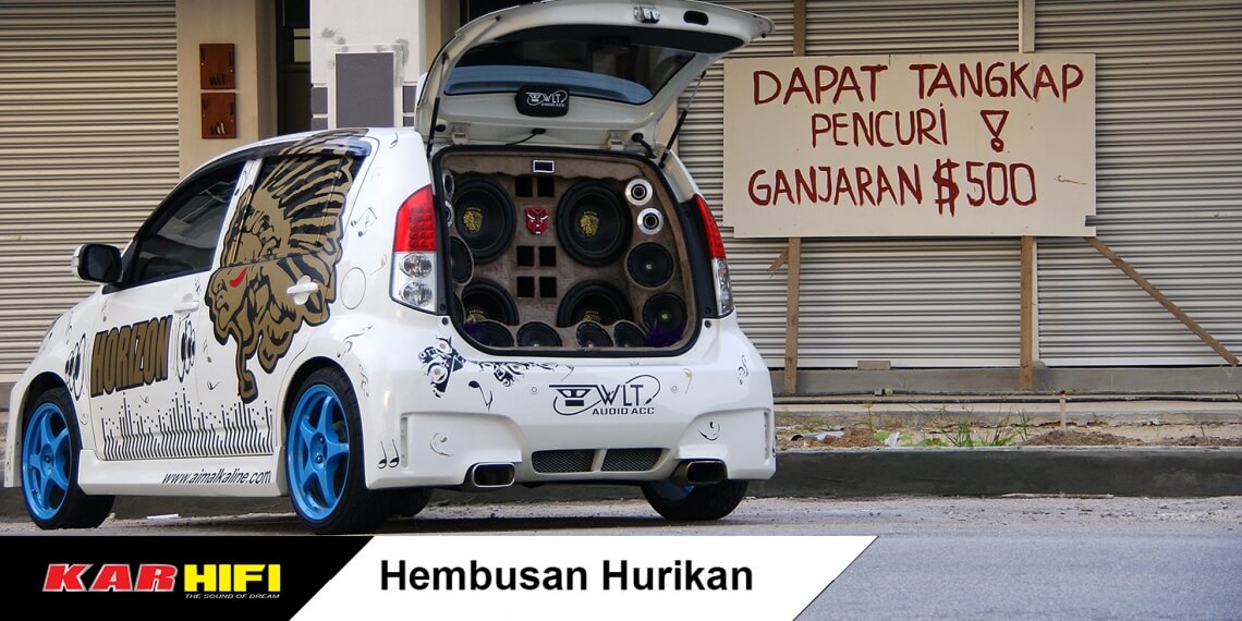 Kalau melihat pada kereta ini, kelihatan ia macam dimiliki oleh sebuah premis untuk sistem demo, tapi sebenarnya ia adalah milik invididu. Apa yang membolehkan seseorang melakukan transformasi sedemikian rupa? Pertama. Minat, kedua minat, ketiga pun minat. Tanpa minat anda tidak akan mengorbankan sebuah kereta yang bagus untuk pengangkutan harian, mengubah kereta lima tempat duduk menjadi dua. Mungkin hanya sebotol softlan yang boleh dibeli di pasaraya dan diletakkan di sini. Ya, itu sahaja. Tiada lagi ruang bagasi.