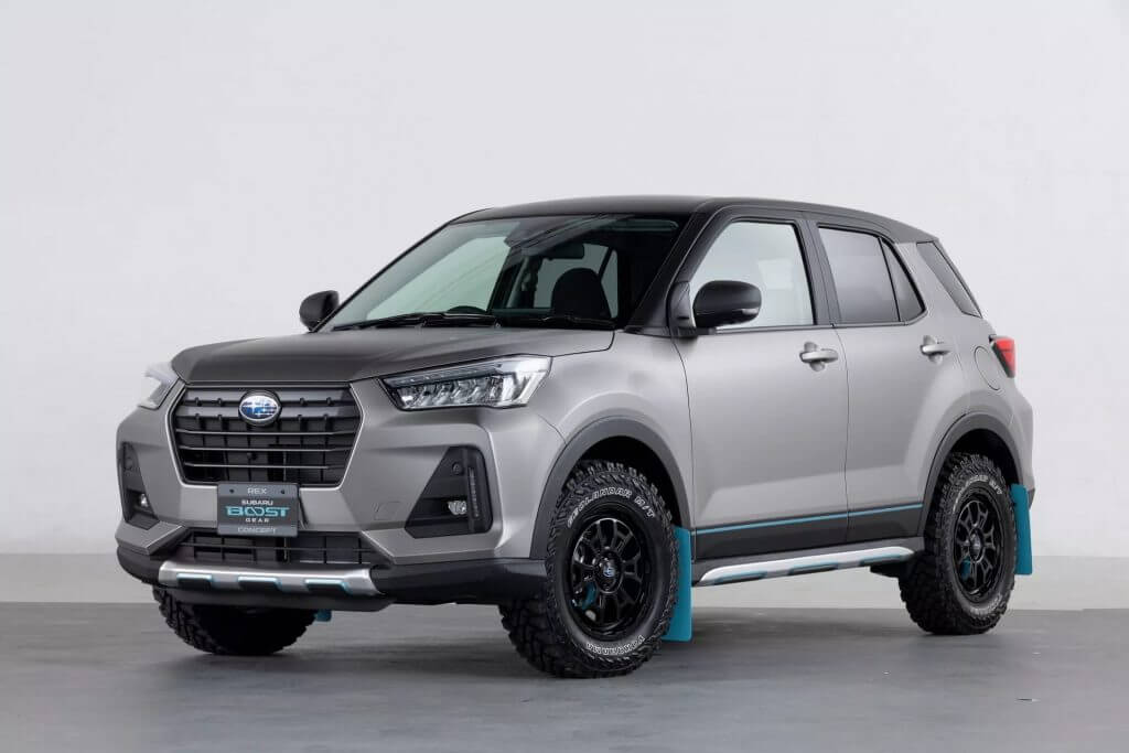 Manakala untuk Subaru Rex Boost Gear Concept pula, ia mempunyai kemaskini lebih segak berbanding Crosstrek kerana ia sebuah SUV urban. Penambahan pada konsep ini dilihat lebih menarik berbanding pek aksesori sedia ada. Versi Subaru kepada Toyota Raize atau Daihatsu Rocky yang telah dikemaskini dengan set rim hitam bersama tayar Yokohama Geolander, mud-flap, skidplate gaya aluminum bersama kemasan matt untuk bahagian badannya serta bumbung hitam diikuti beberapa aksen biru terang.