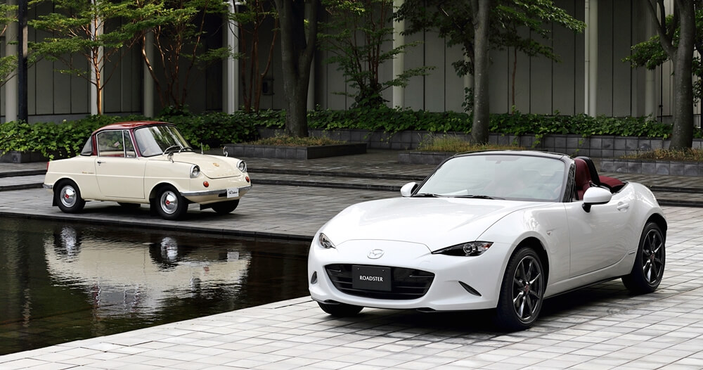 Pada tahun 1960 barulah Mazda mengeluarkan kereta produksinya yang pertama iaitu R360. Kereta coupe mikro ini menerima sambutan hangat dan merupakan model ikonik untuk Mazda. Bagi meraikan 100 tahun Mazda, R360 atau lebih spesifik warna badan putih atau rekaan bumbung warna merah dua tona versi gred tinggi model itu dijadikan inspirasi kepada model 100th Anniversary Special Edition.