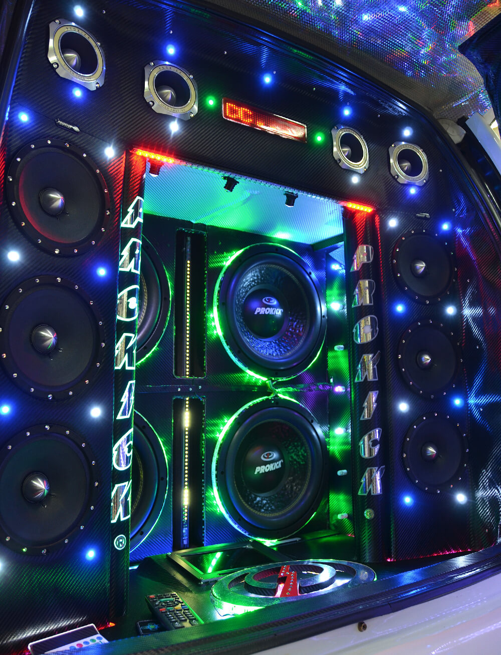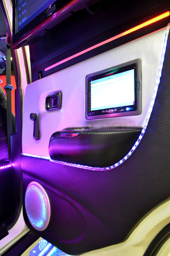 Kereta ini bukan sahaja memiliki speaker yang banyak malah pengubahsuaian keseluruhan menjadikannya sempurna sebagai kereta demo untuk perhatian pelanggan. Tidak ada sebuah kereta pun yang pernah saya temui menggunakan limpahan lampu LED sebegini banyak. Ia disesuaikan dengan pelbagai warna dan lokasi dan bila dinyalakan kelihatan begitu meriah sekali.