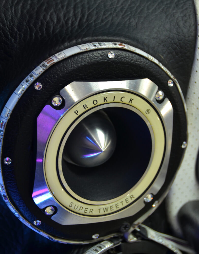 Enam unit tweeter menjadi pelengkap di bahagian kabin tadi. Tweeter jenis horn ini disusun dengan empat di bahagian atas menghadap luar dan dua unit lagi di bahagian sisi menghala satu sama lain. Kuasa yang diperolehi ialah dari amplifier 4 channel Prokick PK504R sementara penalanya datang dari seunit pre-amp MKQ-7C.