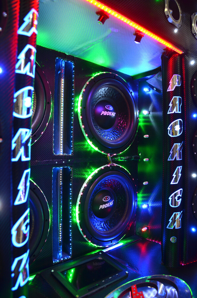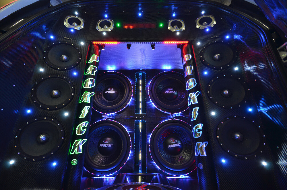 Mid bass tambahan di dalam kabin kereta dipasang pada lokasi strategik. Setiap panel pintu mendapat 2 unit mid bass yang dilekapkan dalam perumah gentian kaca. Bukan sahaja unit yang menjadi ukuran tetapi penalaan yang tepat juga sangat kritikal memandangkan jumlah speaker yang digunakan agak banyak. Pre-amp EQS-9 dipertanggungjawapkan untuk tujuan itu manakala aspek kuasa diselesaikan sekali lagi oleh amplifier 4 channel Prokick PK504R.