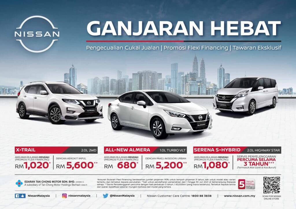 Edaran Tan Chong Motor Sdn Bhd (ETCM) telah mengumumkan kempen Ganjaran Hebat Nissan sempena pengumuman pengecualian cukai jualan kenderaan oleh kerajaan Malaysia baru-baru ini. Menerusi kempen ini, Nissan menawarkan pelbagai ganjaran hebat seperti promosi khas dengan program pembayaran fleksibel, aksesori menawan dan juga pakej penyelengaraan.