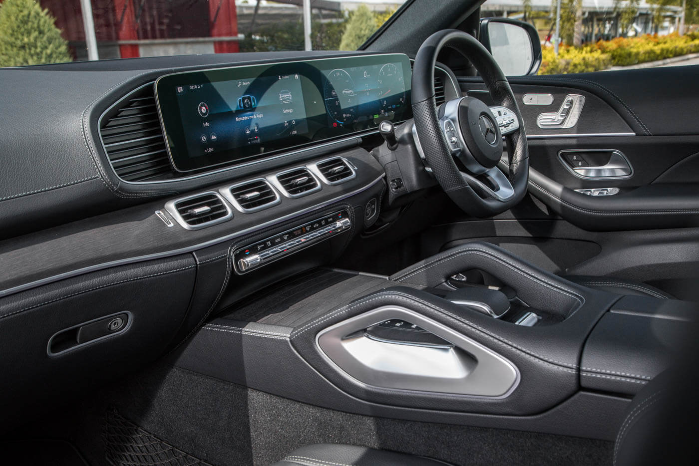 Bahagian luarannya diserlahkan menerusi pakej AMG Line, pakej AMG Night, spoiler AMG, lampu utama LED Multibeam, Adaptive Highbeam Assist Plus, rim forged AMG 22 inci, sistem ekzos prestasi AMG tip berkembar, projeksi logo serta cermin suria panorama.