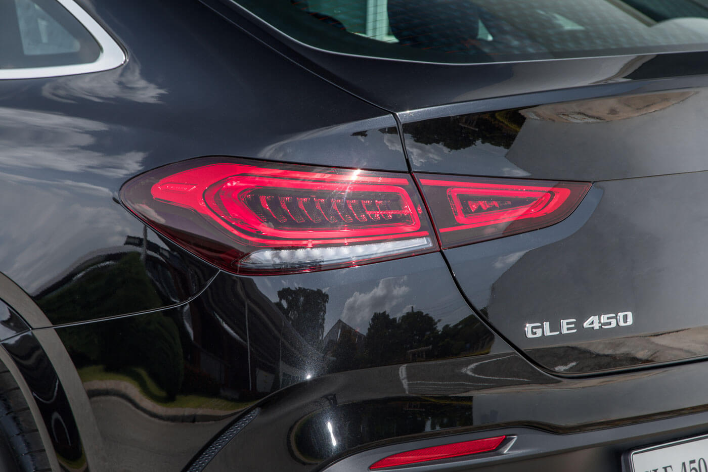 GLE 450 4MATIC Coupé memiliki dimensi 4,939mm panjang dan dan lebar 2,010mm, 39mm lebih panjang dan 7mm lebih lebar berbanding model sebelumnya. Jentera itu diserlahkan dengan gril radiator berbentuk berlian bersama kemasan krom horizontal pada bahagian tengahnya dan apron hadapan. Sama seperti lampu utama, lampu belakang juga menggunakan teknologi LED yang cukup menarik.