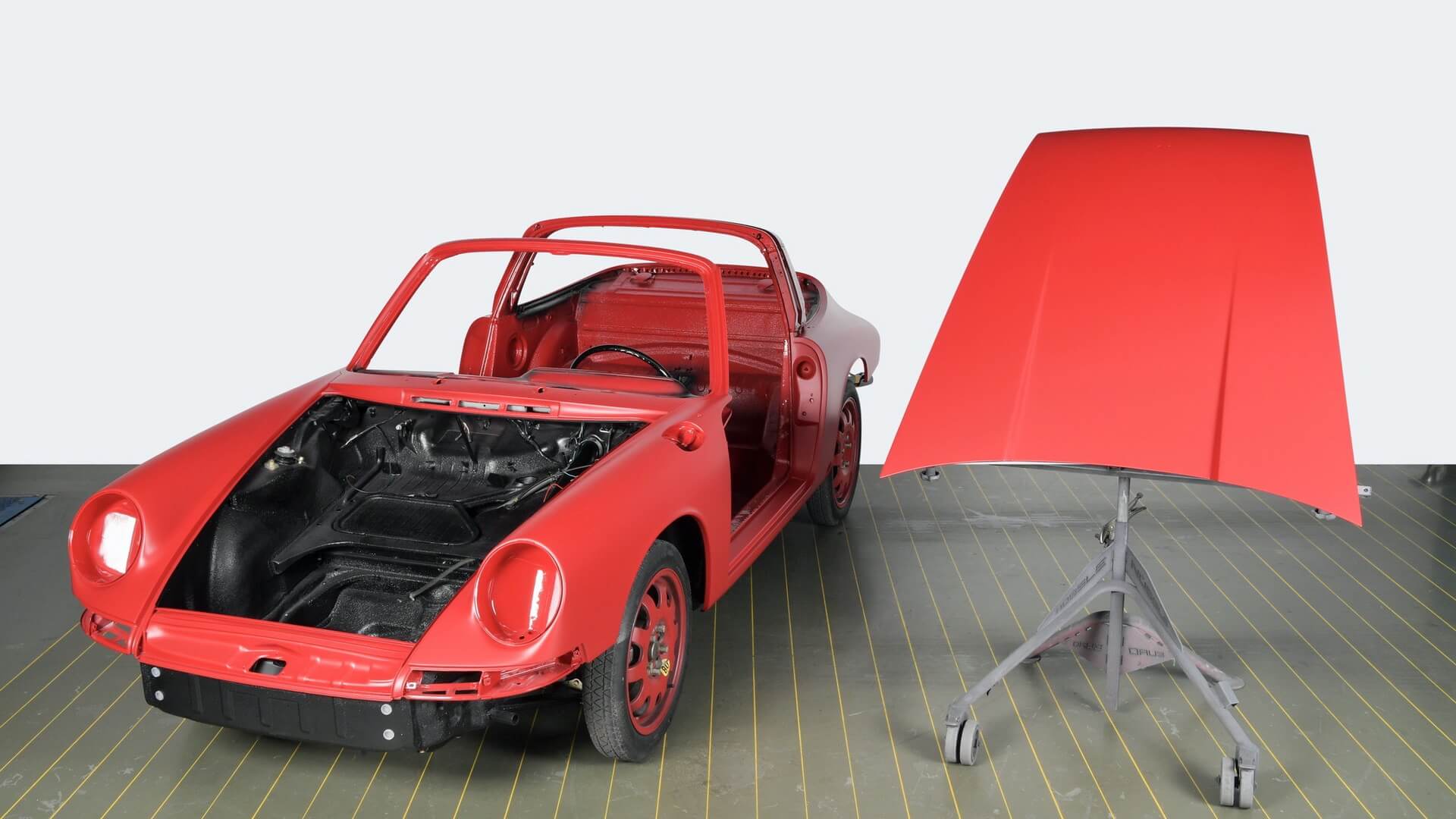Lebih kurang 1,000 jam telah diluangkan untuk menyiapkan bahagian badan kereta ini sahaja dan apabila selesai, warna merah poli digunakan yang dicat menggunakan tangan. Warna ini dilindungi pula oleh filem dengan “matting effect” yang boleh ditanggalkan tanpa sebarang masalah walaupun sudah digunakan beberapa tahun.