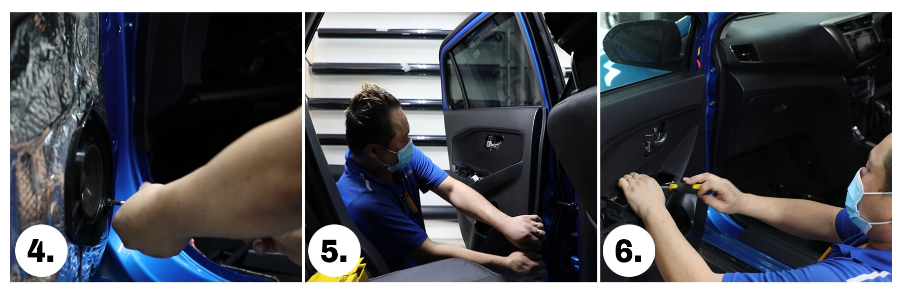 Pemasangan mid bass 6.5” Top Palace yang menggantikan speaker stok kilang di panel pintu memberikan respons bass yang lebih padu. Begitu juga dengan penambahan dome tweeter 20mm pada dashboard yang meningkatkan ‘sound stage’ di mana suara penyanyi lebih kedengaran serta frekuensi tinggi dapat didengar dengan lebih jelas dari tweeter. Begitu juga dengan penggantian speaker coaxial 6.5” Top Palace di pintu belakang di mana frekuensi tinggi dan respons dipertingkatkan.