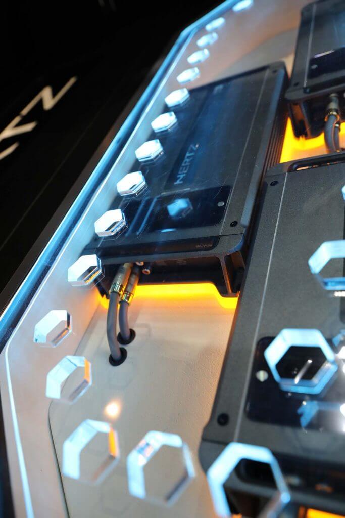 Sebanyak 3 unit amplifier telah digunakan yang terdiri daripada 2 unit amplifier 4 channel Hertz ML Power 4 dan seunit amplifier monoblock Hertz ML Power 1. Kedua-dua unit amplifier 4 channel ini berfungsi untuk memacu sejumlah 6 unit speaker. Unit amplifier yang pertama memacu 2 unit midrange Hertz Mille Legend ML 700.3 dan tweeter Hertz Mille Legend ML280.3. Setiap satu unit midrange dan tweeter ini dipasangkan pada kedua-dua belah pillar A dengan mengambil kira posisi yang tepat untuk kualiti audio yang dihasilkan dapat sampai kepada pemandu. Dalam hal ini, penjurian yang diutamakan dan kedudukan speaker yang tepat amat penting.