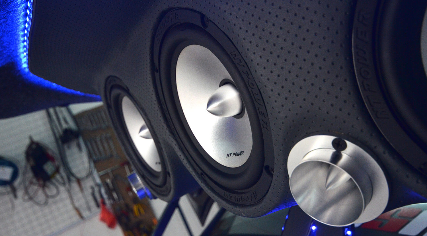 Selesai dengan aspek ‘low’ band, kini frekuensi tengah dan tingginya pula dijadikan sandaran seterusnya. Memanipulasikan sepenuhnya ruang but belakang, pihak Top Racing telah merekabentuk perumah khusus untuk memuatkan 4 unit mid bass 6” NT Power NT-6.0C dan 2 unit tweeter Kole Audio QD-TW100. Perumah ini dibina menggunakan kayu nipis yang disatukan bersama dan kemasan akhirnya menggunakan lapisan PVC hitam yang kelihatan seragam untuk seluruh bahagian butnya.