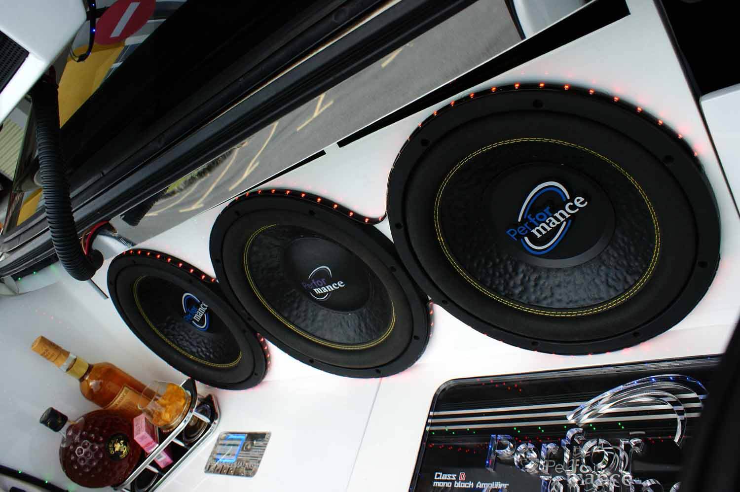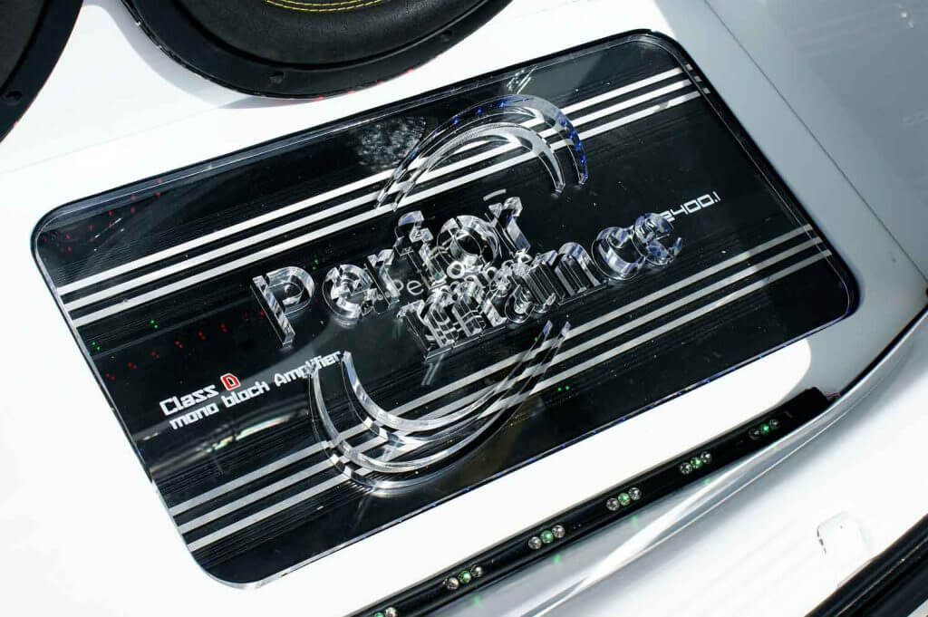 Bagi mendapatkan agihan yang betul, amplifier Performance PF 2400-1 jenis monoblok telah dipasangkan untuk memacu tiga unit woofer Performance PF-12DD. Set woofer ini dipasangkan di bahagian but dengan enclosure custom yang dibina terus mengisi sebahagian besar ruang bagasi but. Tanpa berkongsi kuasa dengan mana-mana speaker lain, ia adalah talaan yang tepat, menghasilkan dentuman bass yang jitu.