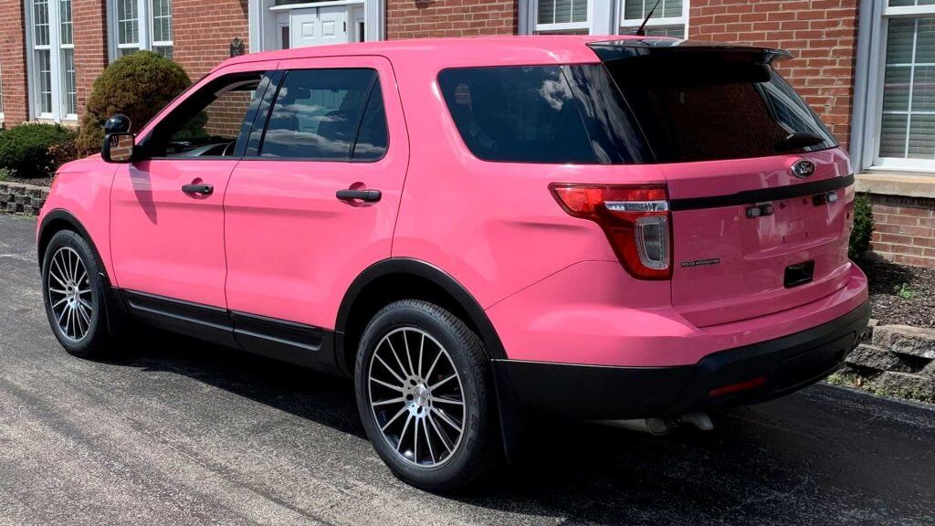 Jarang jumpa dan itu yang membuatkan Ford Explorer berwarna merah jambu “hot pink” ini tampil lebih unik. Namun, warna hot pink ini bukan satu-satunya sebab yang membuatkan ia unik. Jika diperhatikan, bahagian bar hadapan lebih lebar mirip Explorer kenderaan rasmi polis.