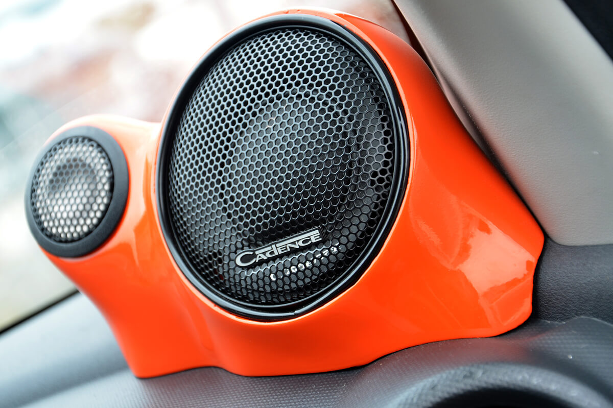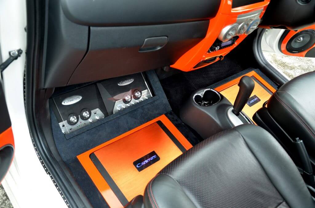 Dari pemproses ini, saluran mid diteruskan dengan pemasangan dua unit amplifier untuk mid. 2 unit amplifier 4 channel Cadence Xenith XA175.4 ditugaskan untuk frekuensi sederhana dan tinggi. Seperti yang dapat dilihat dalam foto yang dirakam jurugambar profesional kami (cewah!) bahagian hadapan dipadankan dengan sistem 3 way split. 2 unit di bahagian pintu untuk speaker saiz 6”, 2 unit di atas dashboard untuk mid range 4” dan 2 unit tweeter. Kesemua speaker ini dipasangkan dalam perumah khusus untuk mengasingkan frekuensi bunyi menjadi lebih nyata (dan terima kasih pada processor tadi!)